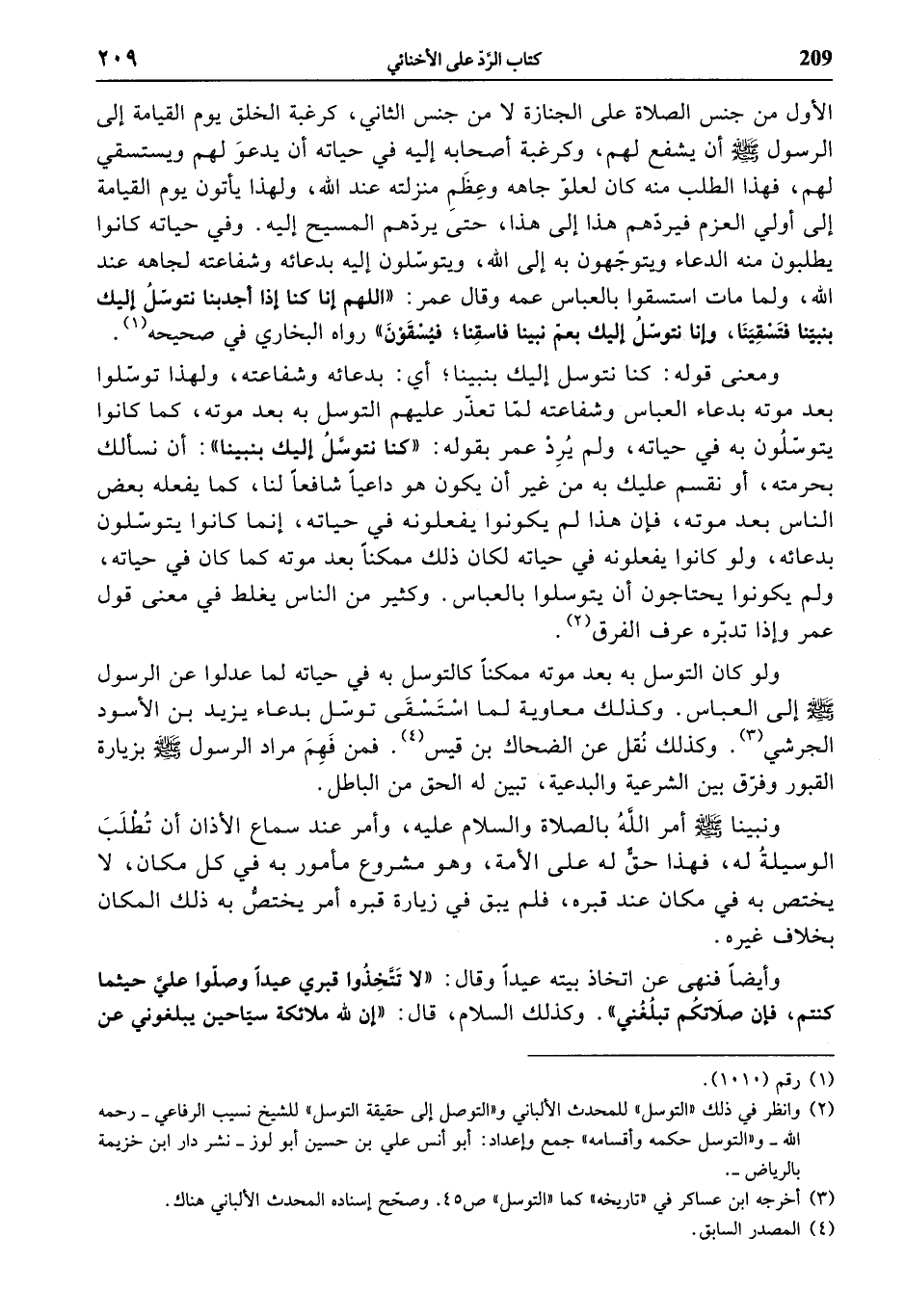 (2) وانظر في ذلك «التوسل» للمحدث الألباني و «التوصل إلى حقيقة التوسل» للشيخ نسيب الرفاعي- رحمه الله- و «التوسل حكمه وأقسامه» جمع وإعداد: أبو أنس علي بن حسين أبو لوز- نشر دار ابن خزيمة بالرياض-.