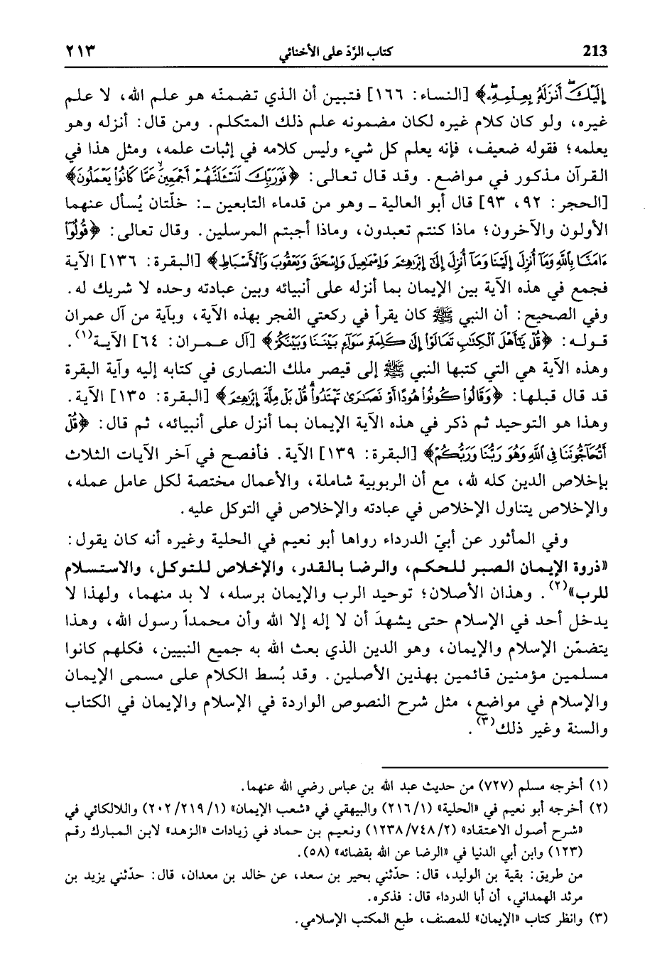 (3) وانظر كتاب «الإيمان» للمصنف، طبع المكتب الإسلامي.