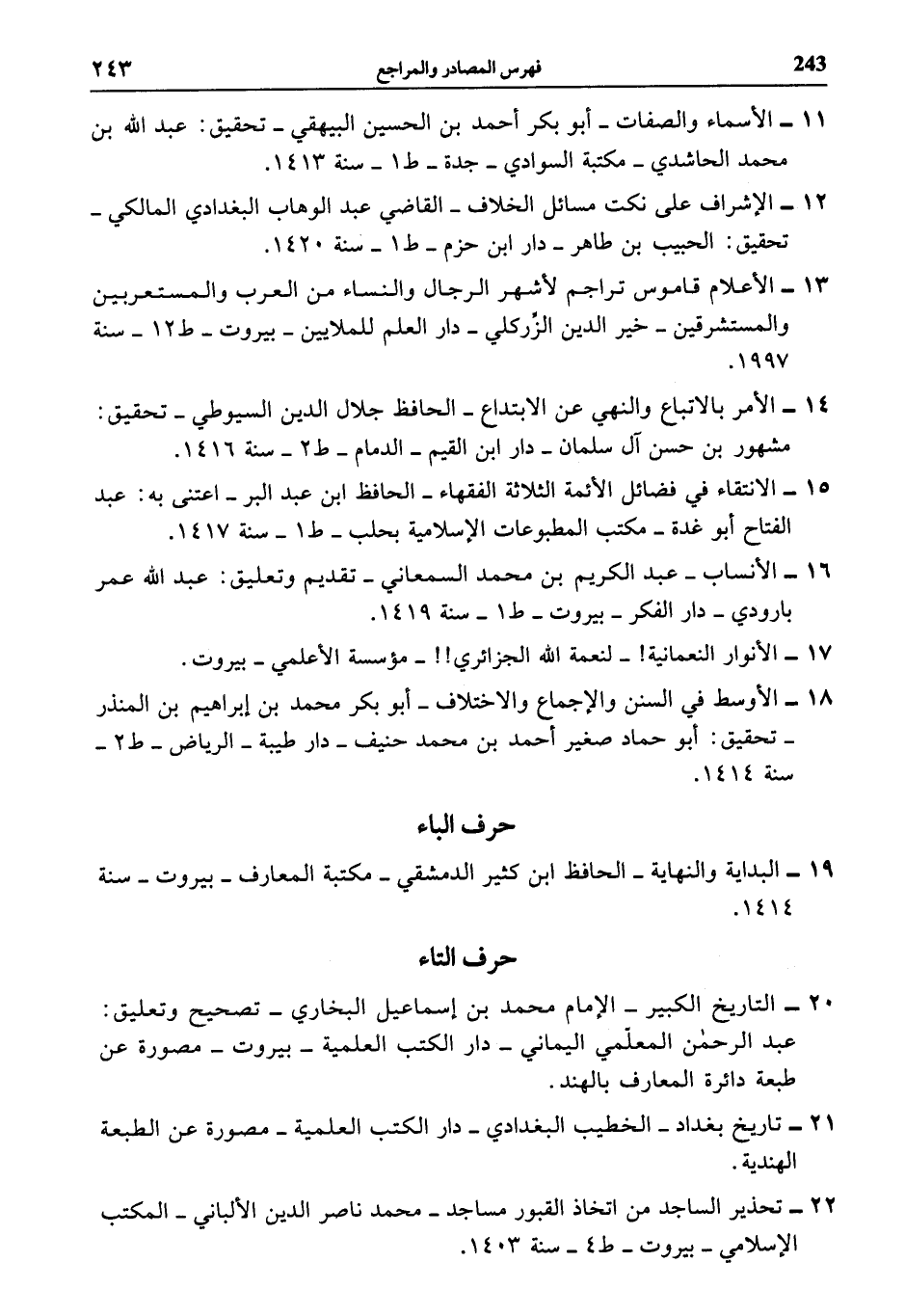 22 - تحذير الساجد من اتخاذ القبور مساجد- محمد ناصر الدين الألباني- المكتب الإسلامي- بيروت- ط 4 - سنة 1403.