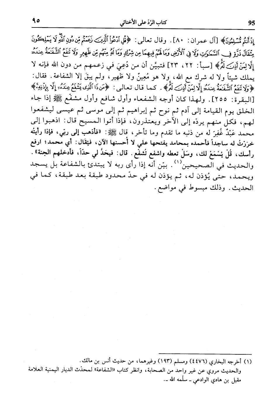 والحديث مروي عن غير واحد من الصحابة، وانظر كتاب «الشفاعة» لمحدّث الديار اليمنية العلامة مقبل بن هادي الوادعي- سلّمه الله-.