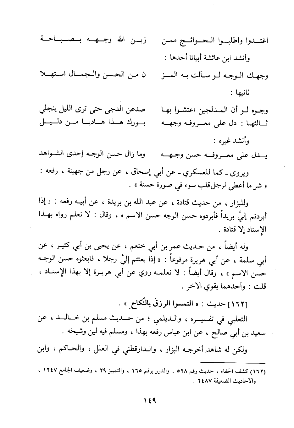 162 - حَدِيث. الْتَمِسُوا الرِّزْقَ بِالنِّكَاحِ، الثعلبي في تفسيره، والديلمي من حديث مسلم بن خالد عن سعيد بن أبي صالح عن ابن عباس رفعه بهذا، ومسلم فيه لين وشيخه، ولكن له شاهد أخرجه البزار والدارقطني في العلل والحاكم وابن