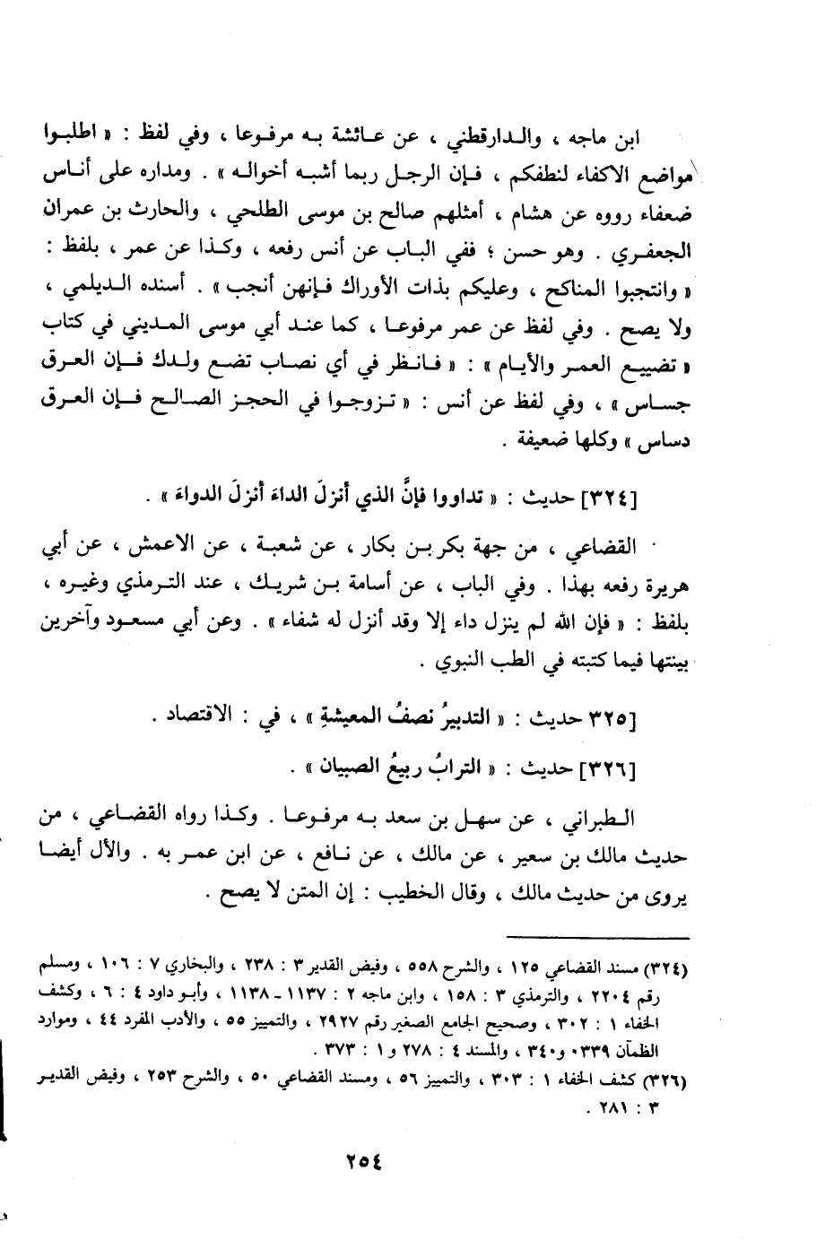 326 - حَدِيث: التُّرَابُ رَبِيعُ الصِّبْيَانِ، الطبراني عن سهل بن سعد به مرفوعا، وكذا رواه القضاعي من حديث مالك بن سعير عن مالك عن نافع عن ابن عمر به، والأول أيضا يروى من حديث مالك، وقال الخطيب: إن المتن لا يصح.