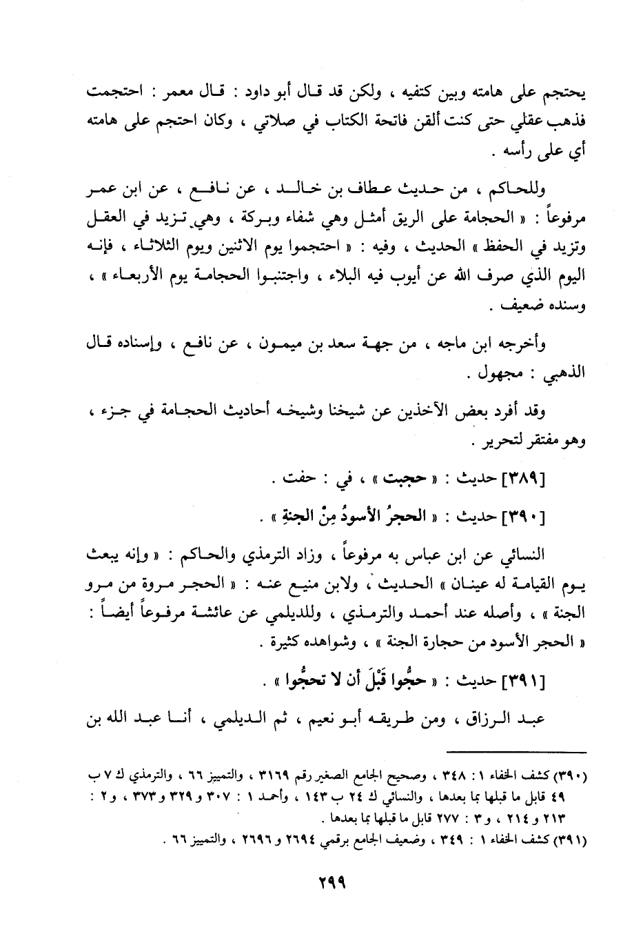 390 - حَدِيث: الْحَجَرُ الأَسْوَدُ مِنَ الْجَنَّةِ، النسائي عن ابن عباس به مرفوعا، وزاد الترمذي والحاكم: وإنه يبعث يوم القيامة له عينان. الحديث ولابن منيع عنه الحدر مروة من مرو الجنة، وأصله عند أحمد، والترمذي، وللديلمي عن عائشة مرفوعا أيضا: الحجر الأسود من حجارة الجنة، وشواهده كثيرة.