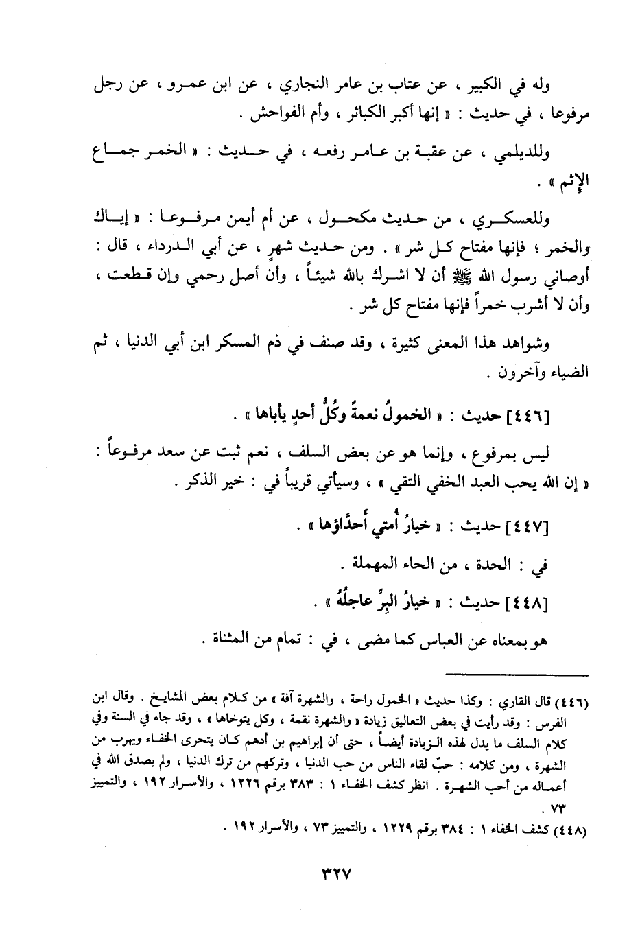 446 - حديث: الخمول نعمة وكل أحد يأباها، ليس بمرفوع وإنما هو عن بعض السلف، نعم ثبت عن سعد مرفوعا: إن اللَّه يحب العبد الخفي التقي، وسيأتي قريبا في: خير الذكر.