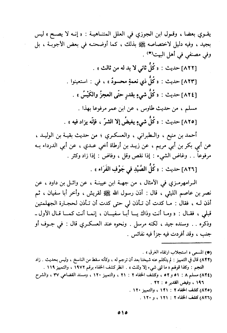 (¬2) قال في التمييز: لم يتكلم عنه شيخنا بعد أن ترجم له، وكأنه سقط من الناسخ، وليس بحديث. زاد النجم: وكذا قولهم " ما ثنى شيء إلا وثلث ". [ط. الخشت]