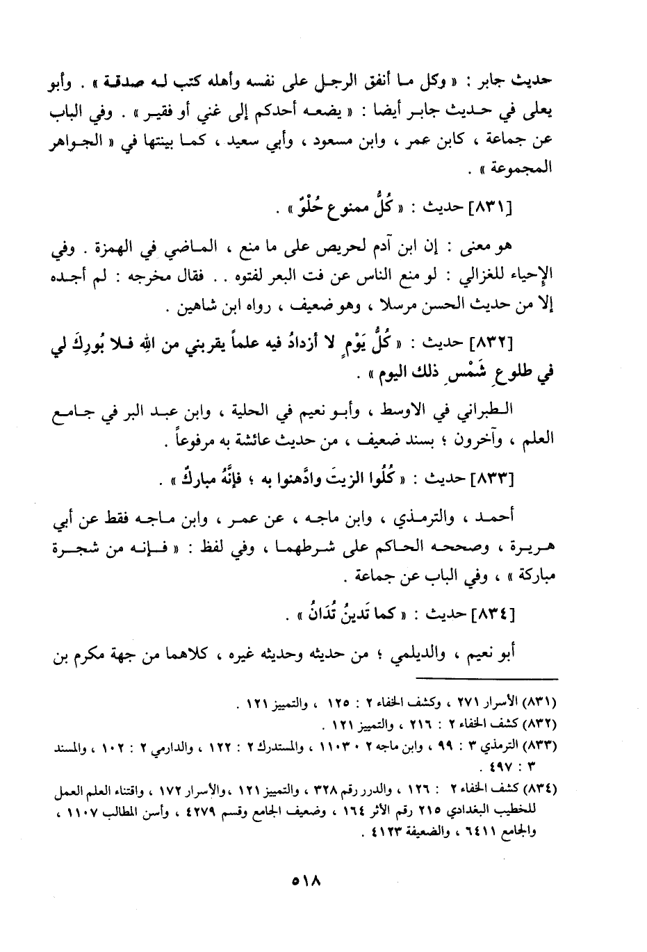 832 - حَدِيث: كُلُّ يَوْمٍ لا أَزْدَادُ فِيهِ عِلْمًا يُقَرِّبُنِي مِنَ اللَّه فَلا بُورِكَ لِي فِي طُلُوعِ شَمْسِ ذَلِكَ الْيَوْمَ، الطبراني في الأوسط، وأبو نُعيم في الحلية، وابن عبد البر في جامع العلم، وآخرون بسند ضعيف من حديث عائشة به مرفوعا.