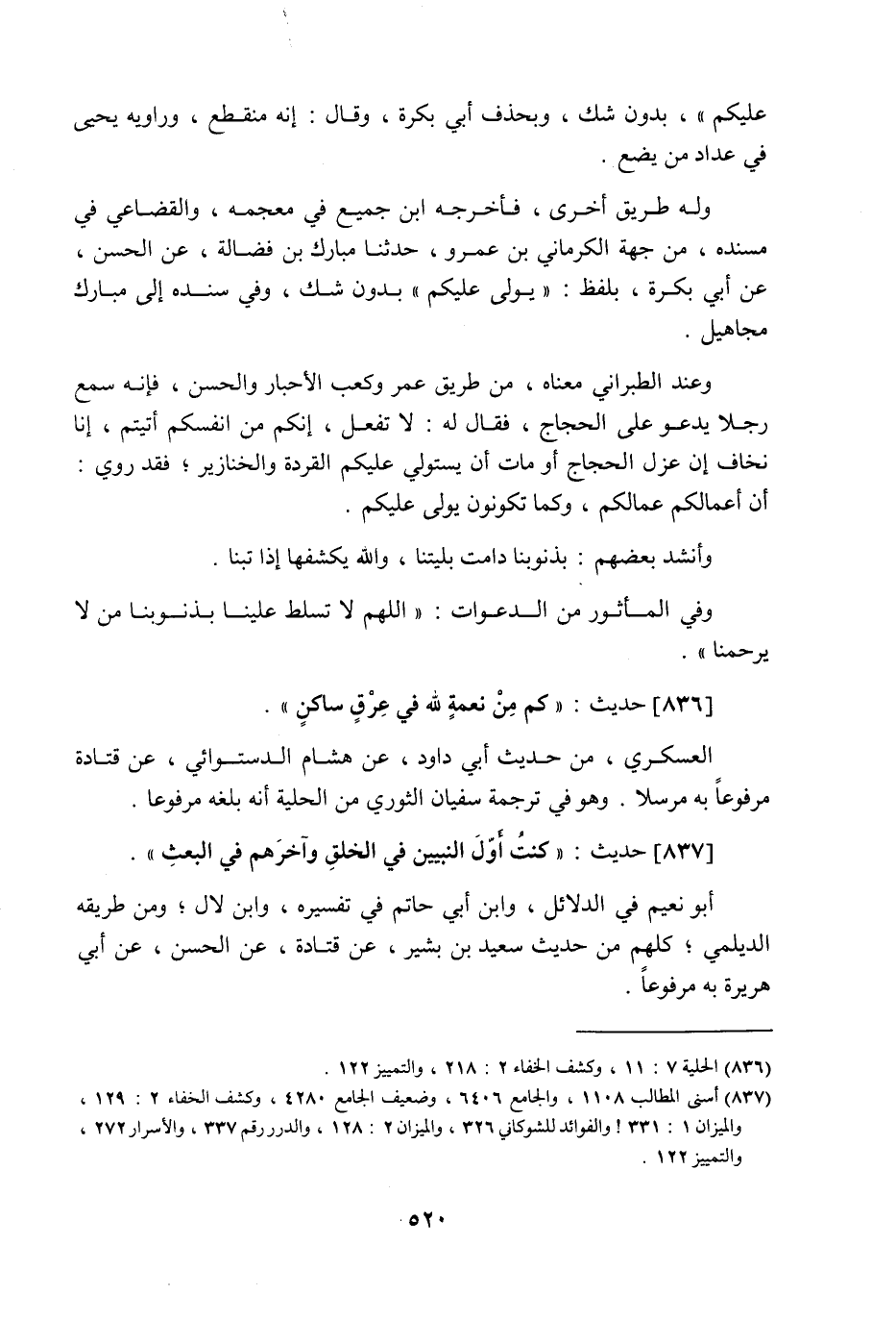 836 - حَدِيث: كَمْ مِنْ نِعْمَةٍ للَّهِ فِي عِرْقٍ سَاكِنٍ، العسكري من حديث أبي داود عن هشام الدستوائي عن قتادة مرفوعا به مرسلا، وهو في ترجمة سفيان الثوري من الحلية أنه بلغه مرفوعا.