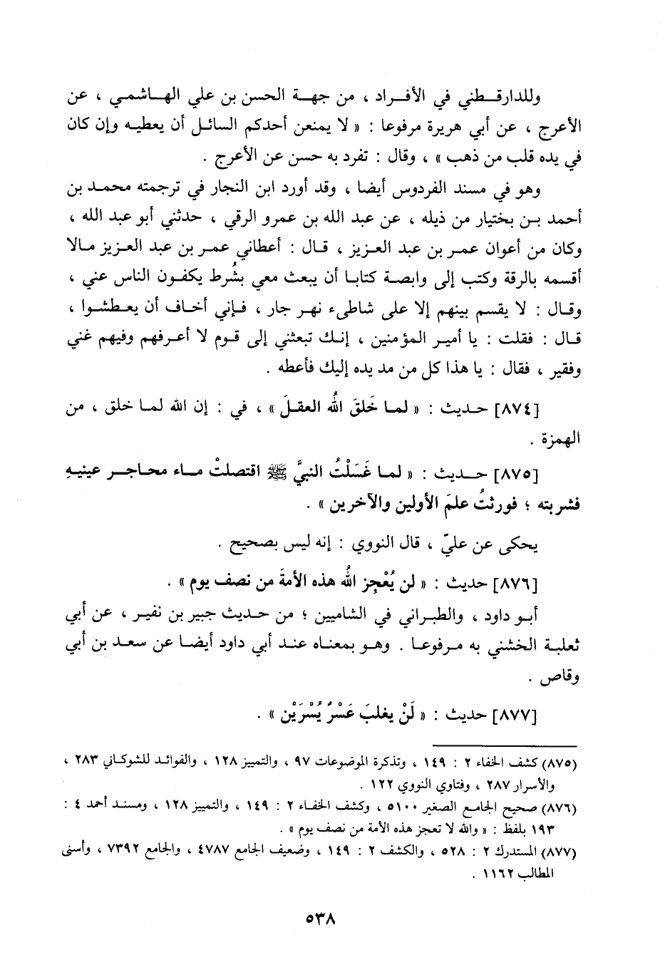 875 - حَدِيث: لَمَّا غَسَّلْتُ النَّبِيَّ صَلَّى اللَّهُ عَلَيْهِ وَسَلَّمَ اقْتَصَلْتُ مَاءَ مَحَاجِرِ عَيْنَيْهِ فَشَرَبْتُهُ فَوَرِثْتُ عِلْمَ الأَوَّلِينَ وَالآخِرِينَ، يحكى عن علي، قال النووي: إنه ليس بصحيح.