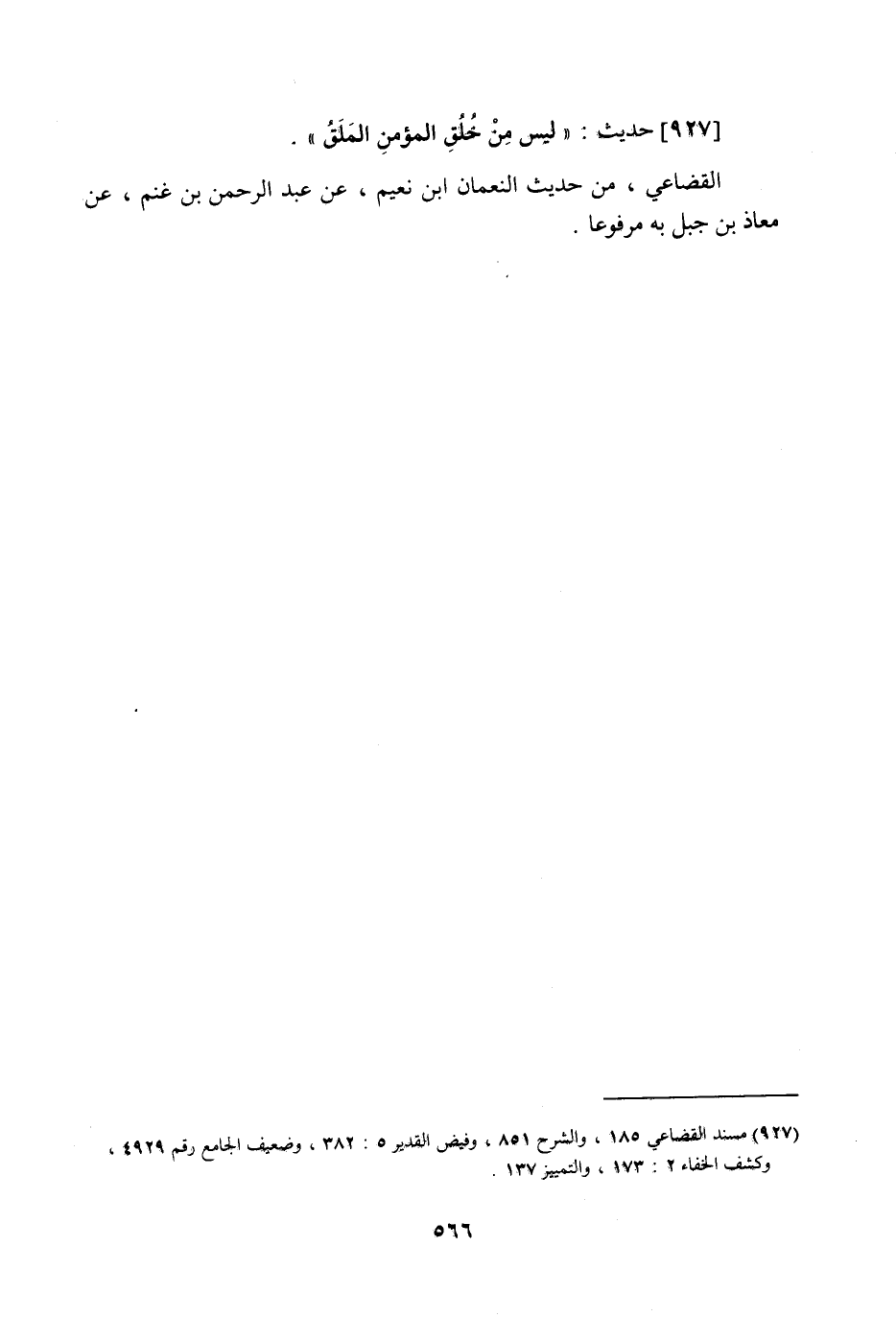 927 - حَدِيث: لَيْسَ مِنْ خُلُقِ الْمُؤْمِنِ الْمَلَقُ، القضاعي من حديث النعمان بن نعيم عن عبد الرحمن بن غنم عن معاذ بن جبل به مرفوعا.