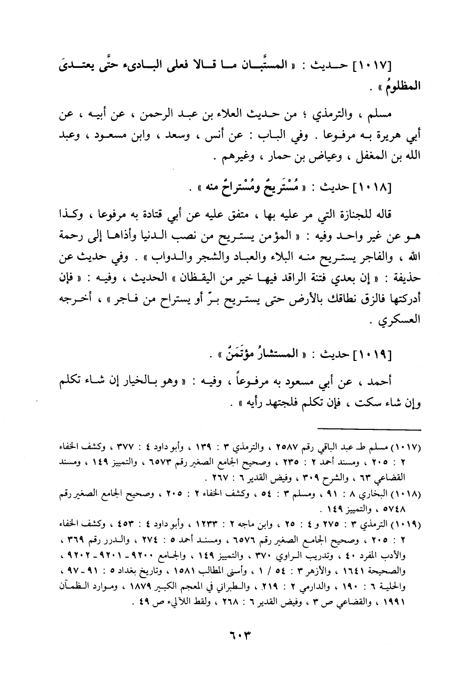 1017 - حَدِيث: الْمُسْتَبَّانِ مَا قَالا فَعَلَى الْبَادِئِ حَتَّى يَعْتَدِيَ الْمَظْلُومُ، مسلم والترمذي من حديث العلاء بن عبد الرحمن عن أبيه عن أبي هريرة به مرفوعا، وفي الباب عن أنس وسعد وابن مسعود وعبد اللَّه بن المغفل وعياض بن حمار وغيرهم.