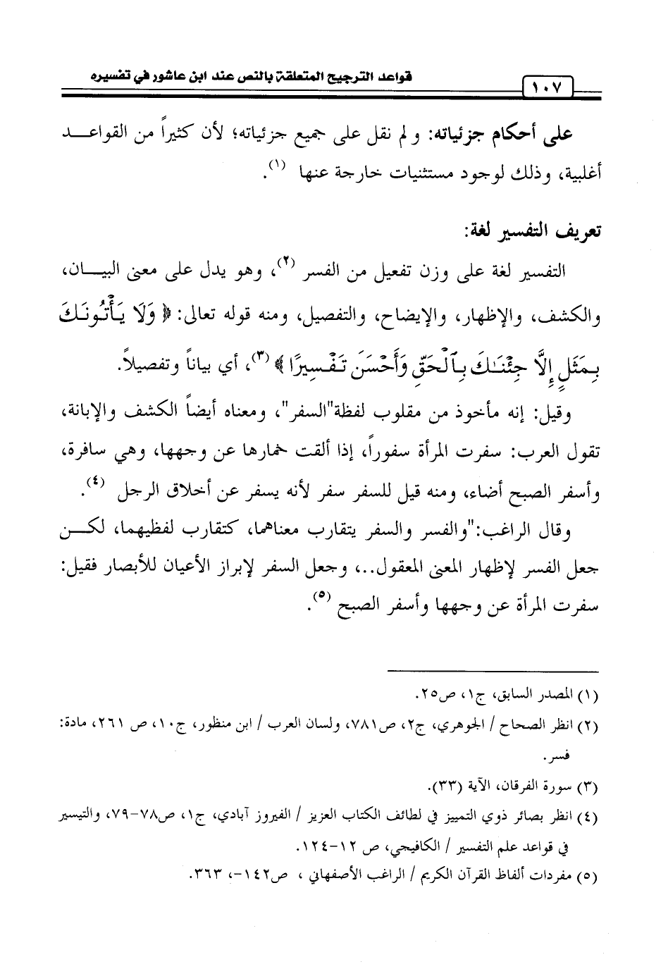 كتاب قواعد الترجيح المتعلقة بالنص عند ابن عاشور في تفسيره التحرير والتنوير