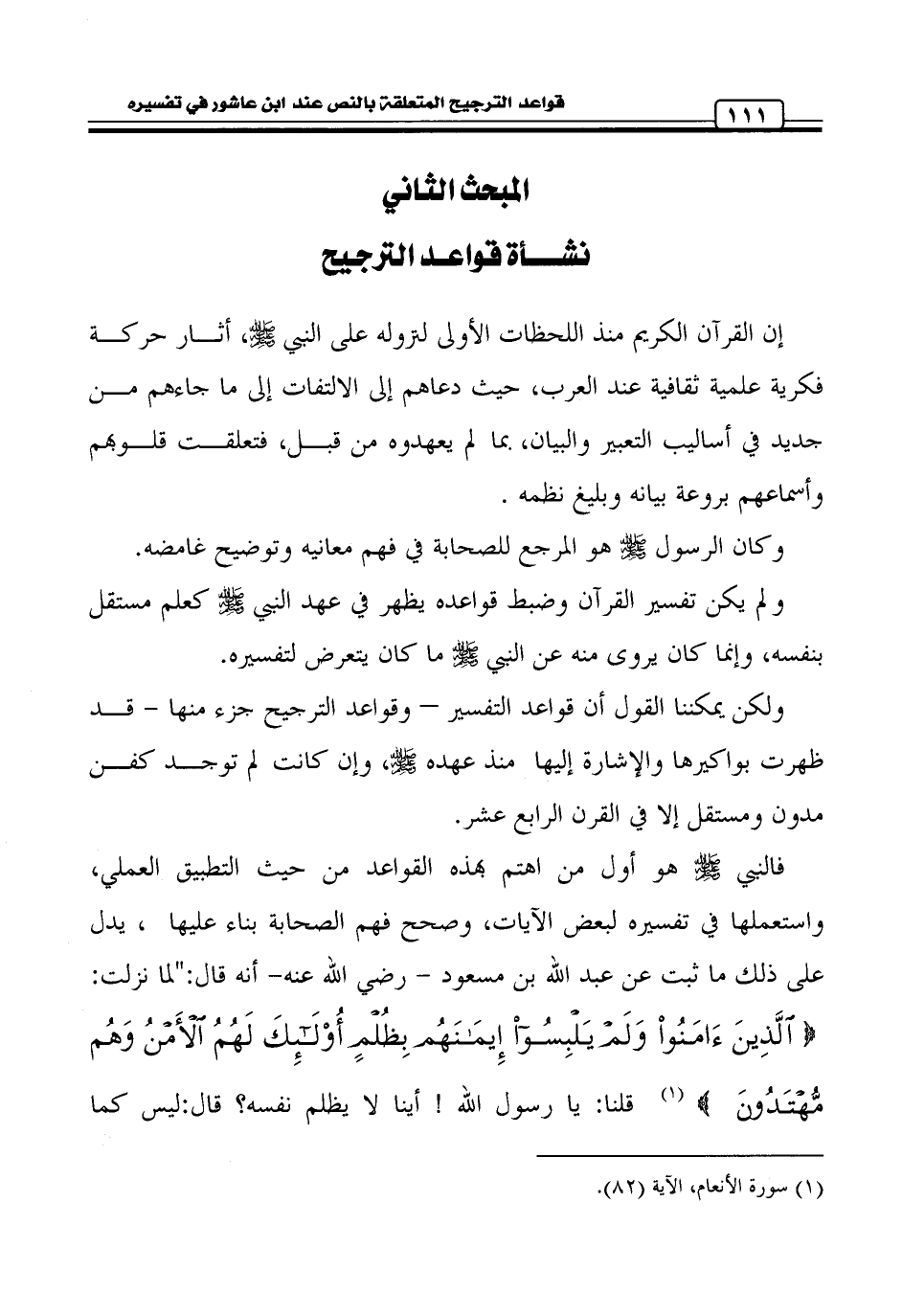 كتاب قواعد الترجيح المتعلقة بالنص عند ابن عاشور في تفسيره التحرير والتنوير