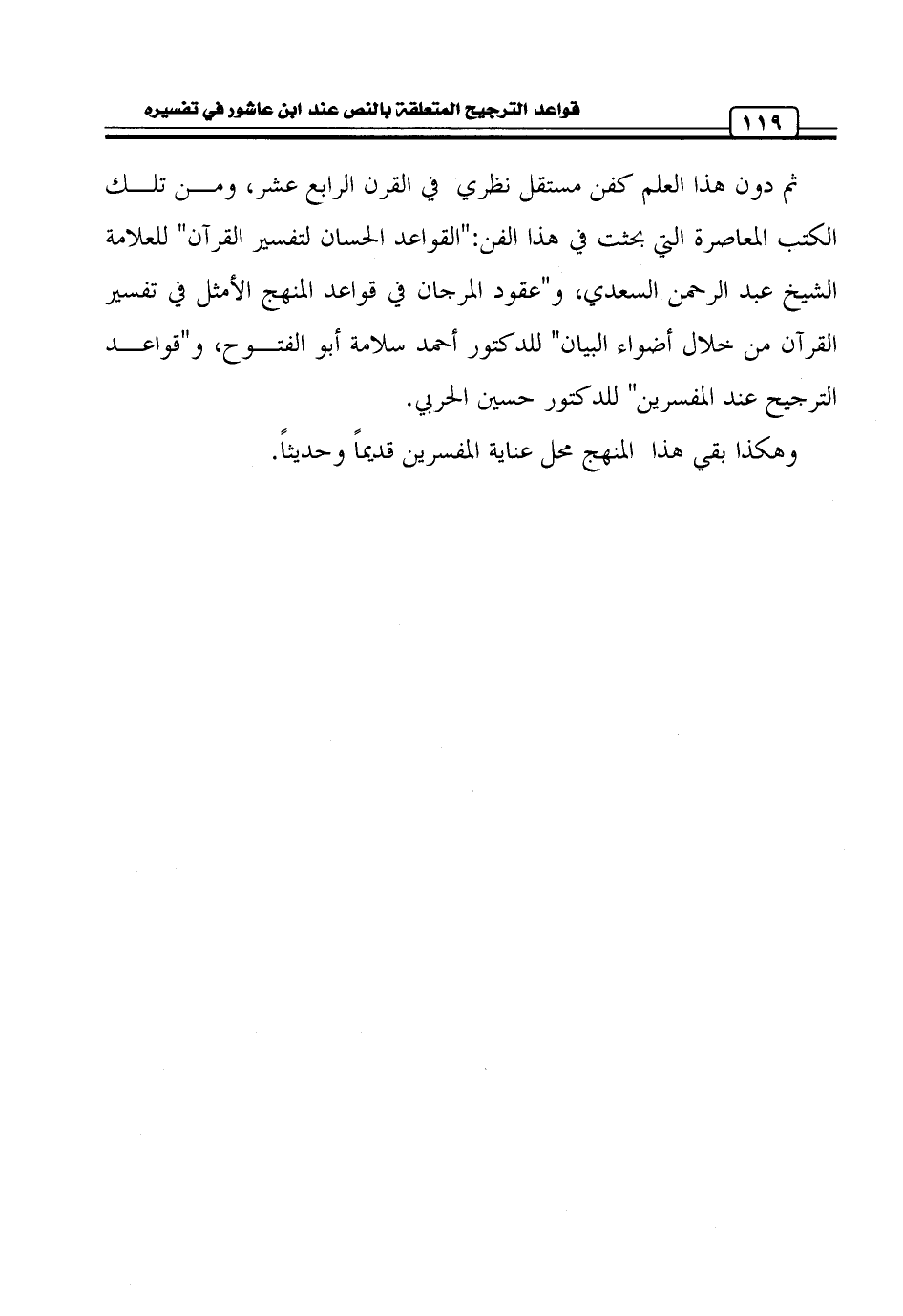 كتاب قواعد الترجيح المتعلقة بالنص عند ابن عاشور في تفسيره التحرير والتنوير