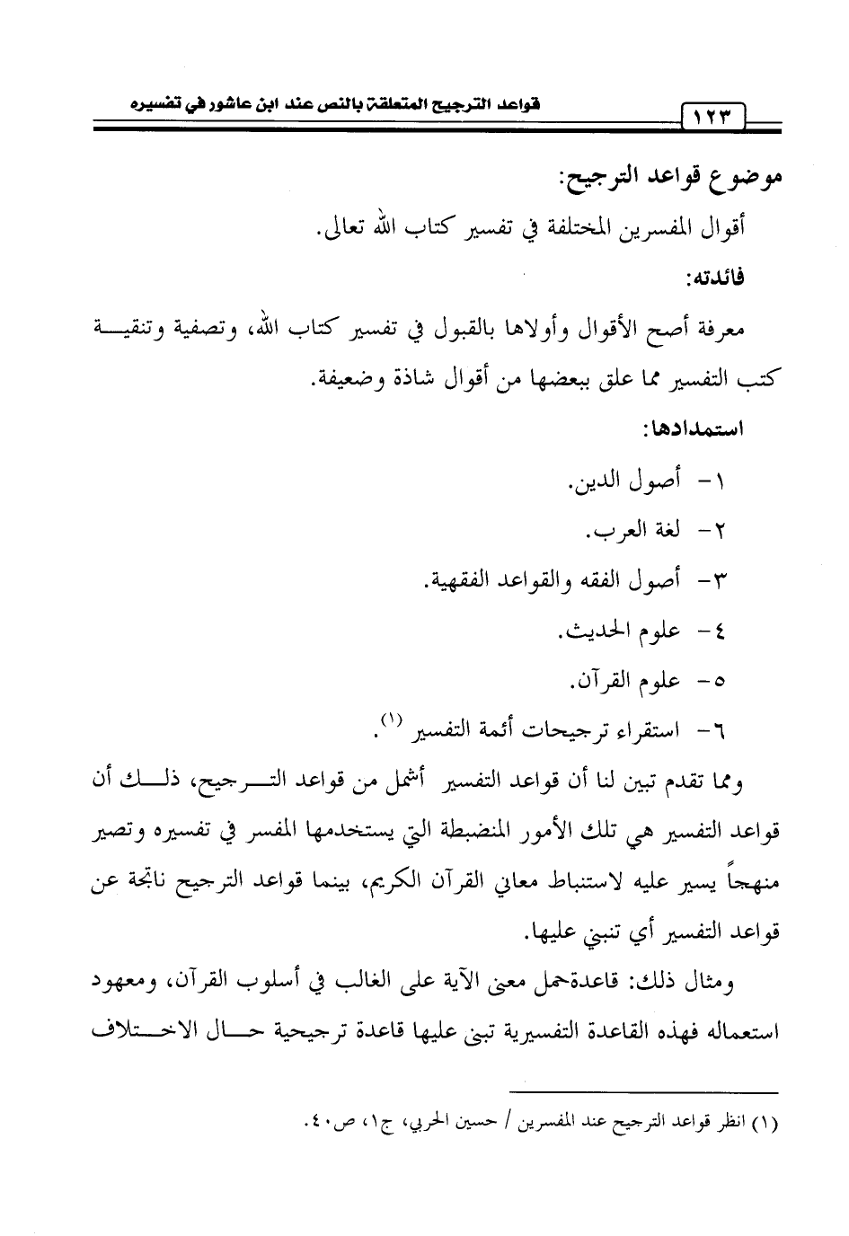كتاب قواعد الترجيح المتعلقة بالنص عند ابن عاشور في تفسيره التحرير والتنوير
