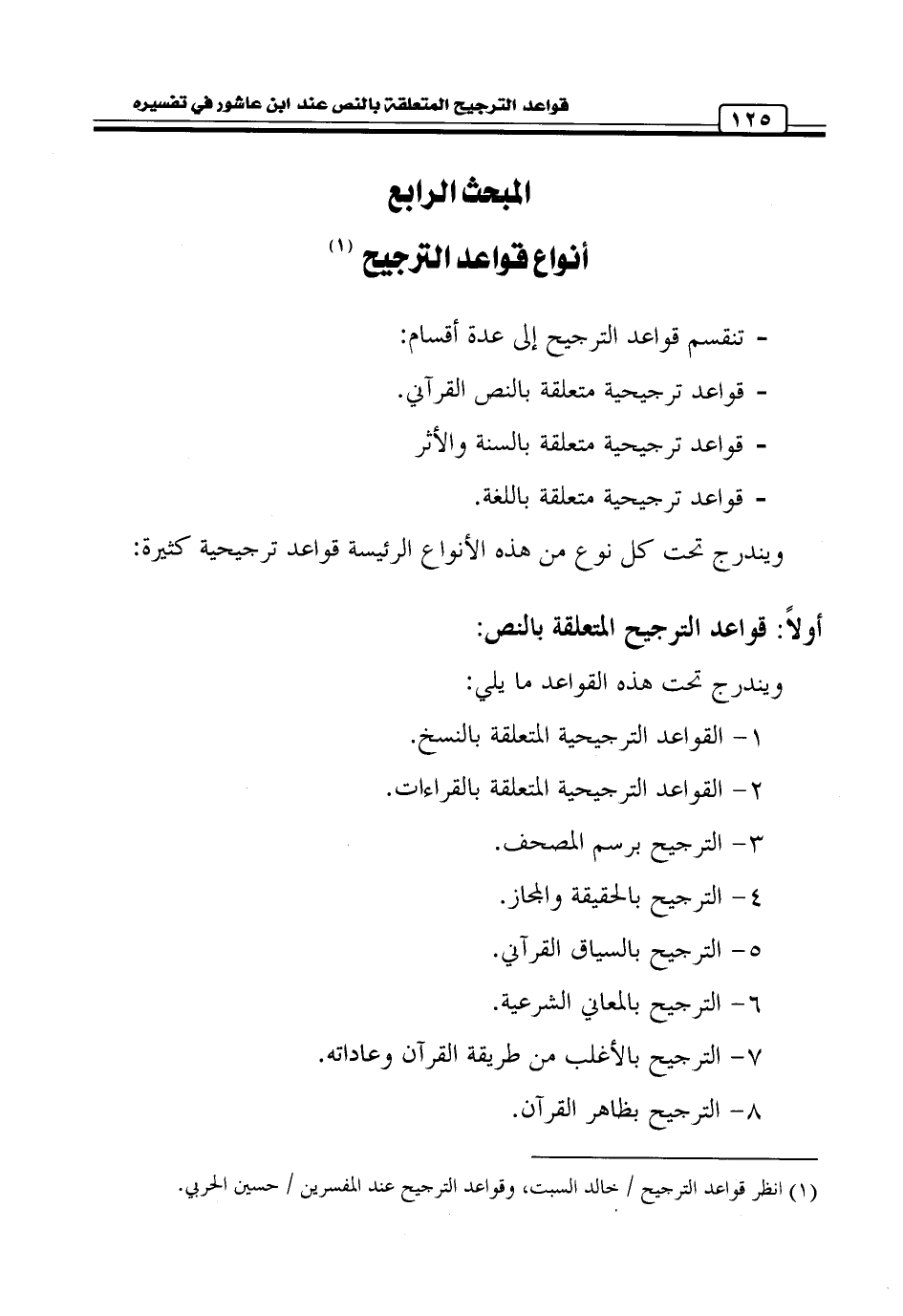 كتاب قواعد الترجيح المتعلقة بالنص عند ابن عاشور في تفسيره التحرير والتنوير