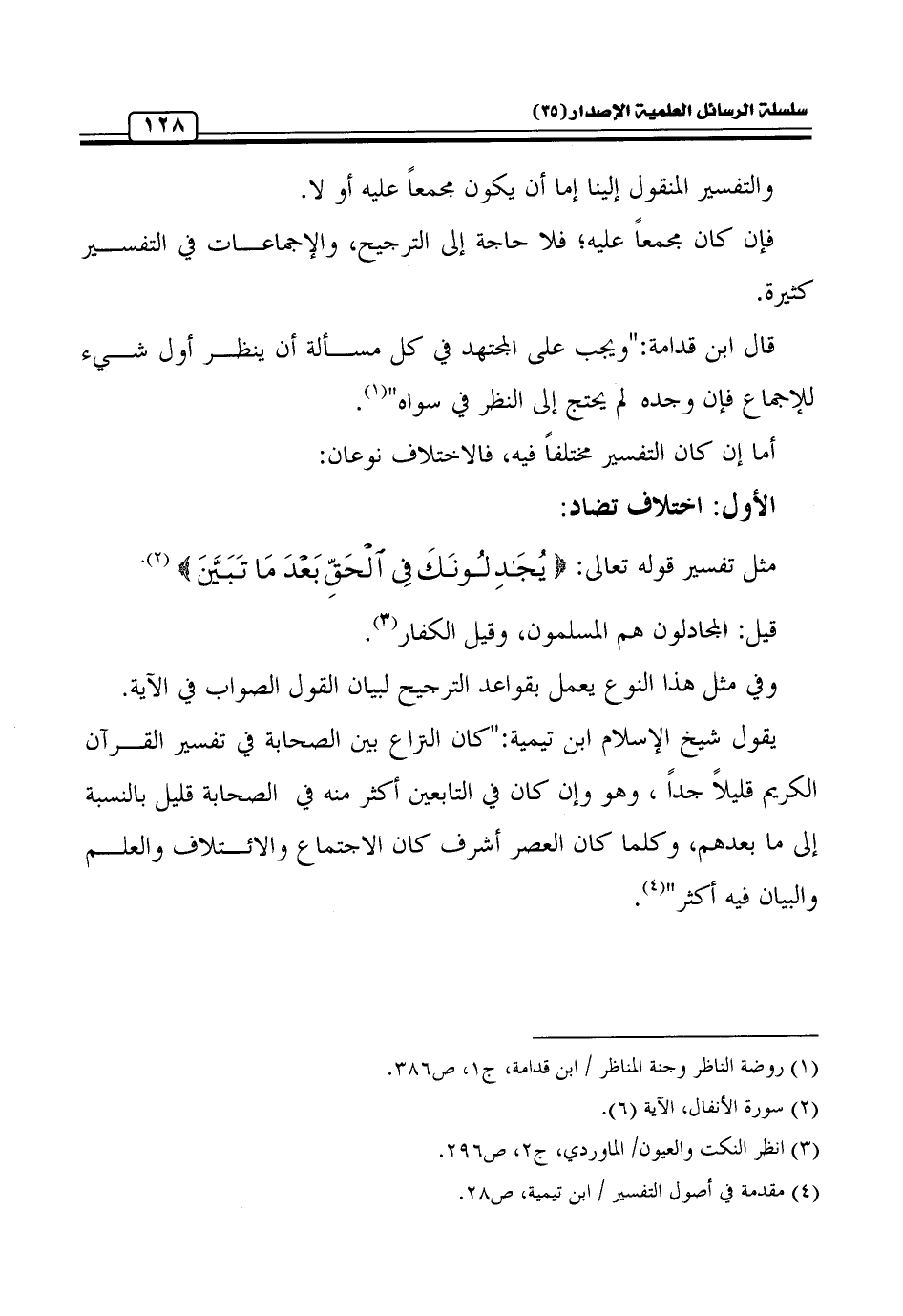 (¬4) مقدمة في أصول التفسير / ابن تيمية، ص 28.