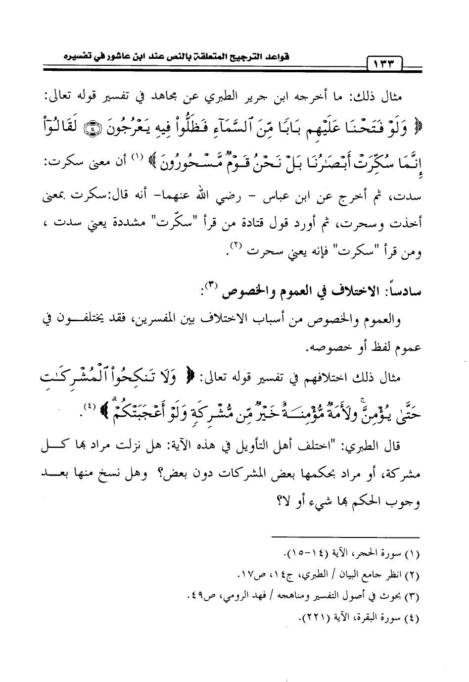كتاب قواعد الترجيح المتعلقة بالنص عند ابن عاشور في تفسيره التحرير والتنوير
