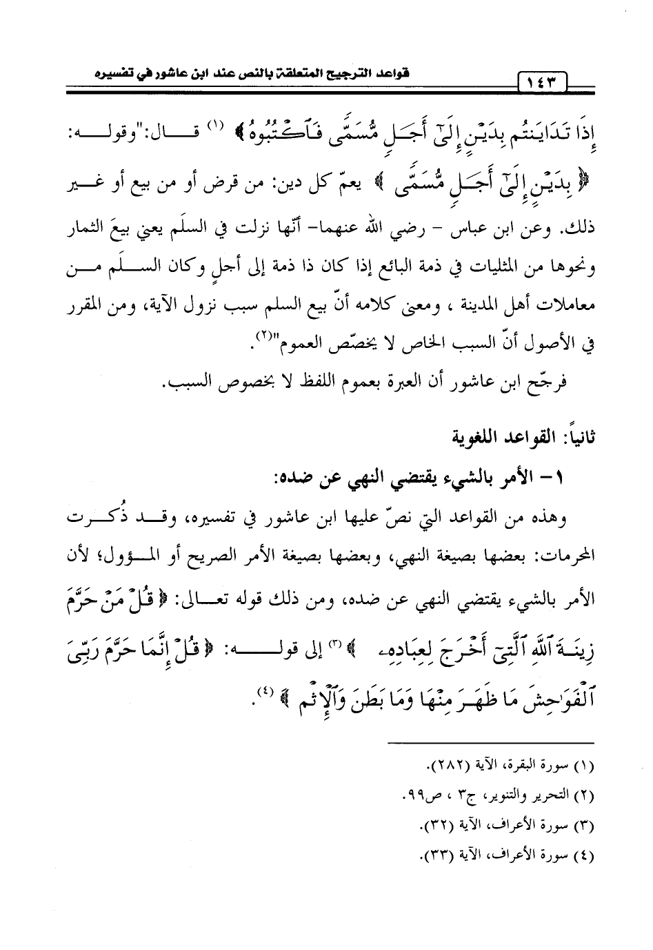 كتاب قواعد الترجيح المتعلقة بالنص عند ابن عاشور في تفسيره التحرير والتنوير