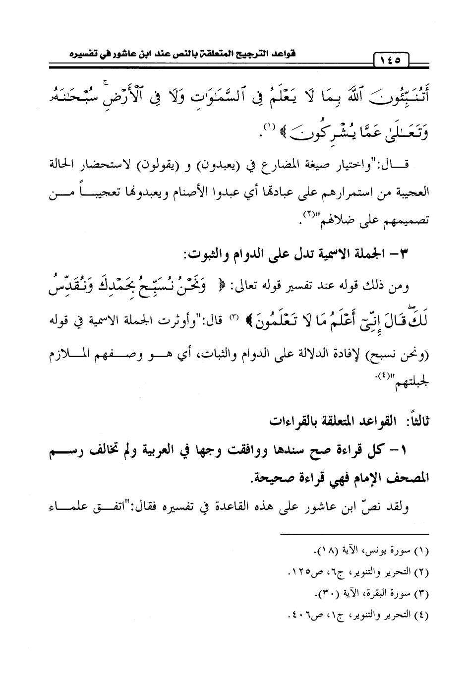 كتاب قواعد الترجيح المتعلقة بالنص عند ابن عاشور في تفسيره التحرير والتنوير