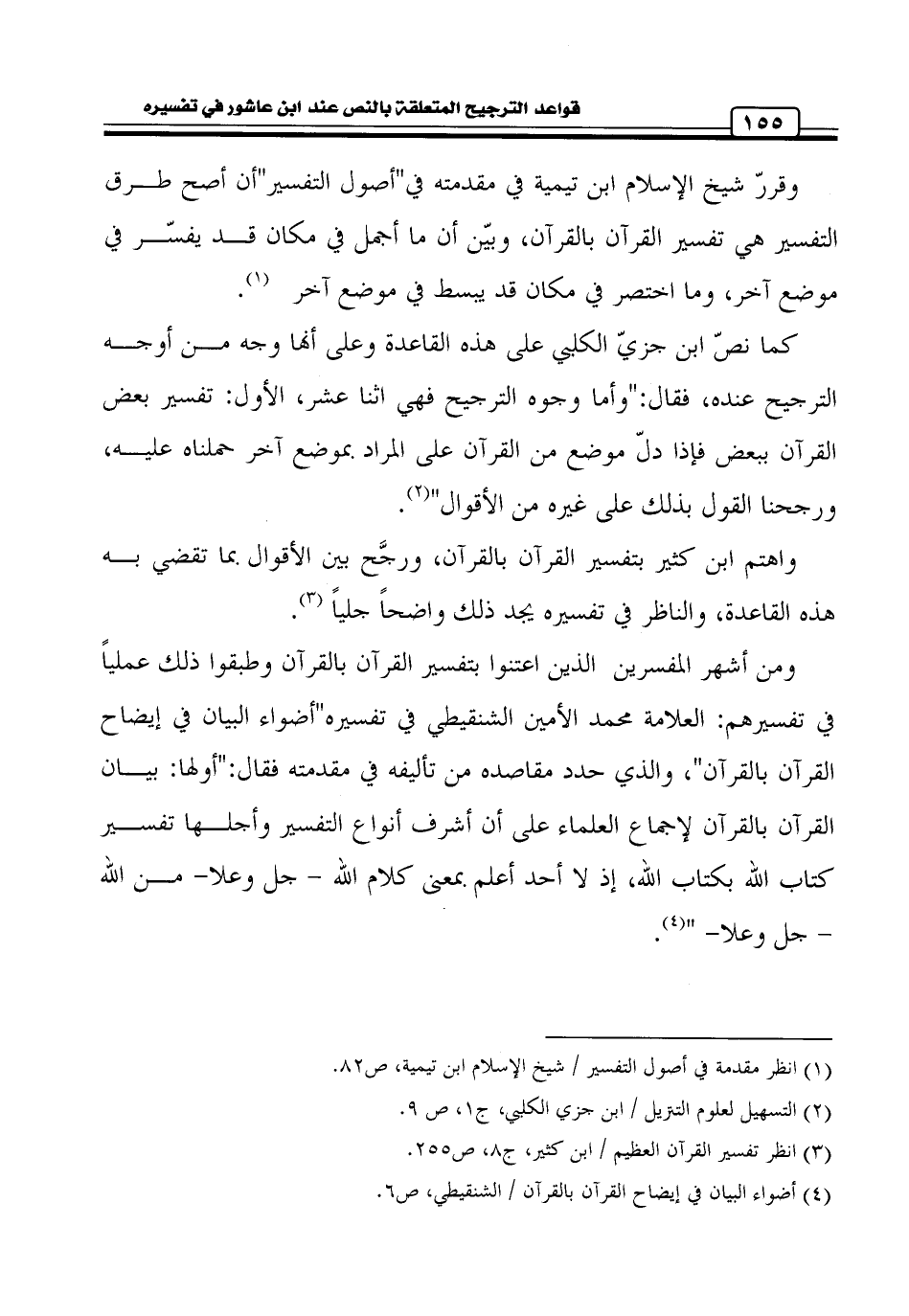 كتاب قواعد الترجيح المتعلقة بالنص عند ابن عاشور في تفسيره التحرير والتنوير