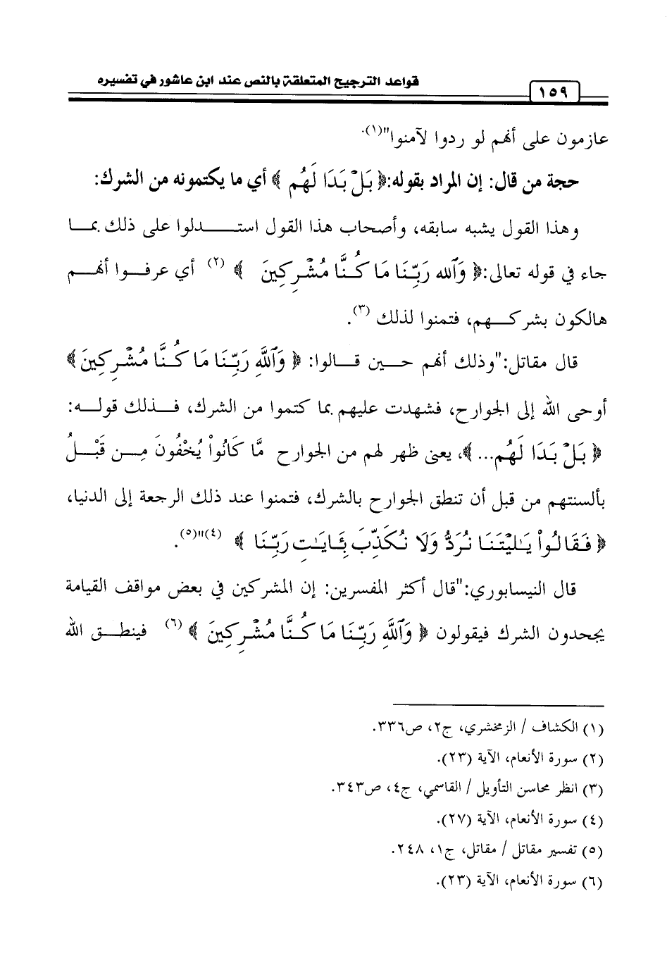 كتاب قواعد الترجيح المتعلقة بالنص عند ابن عاشور في تفسيره التحرير والتنوير