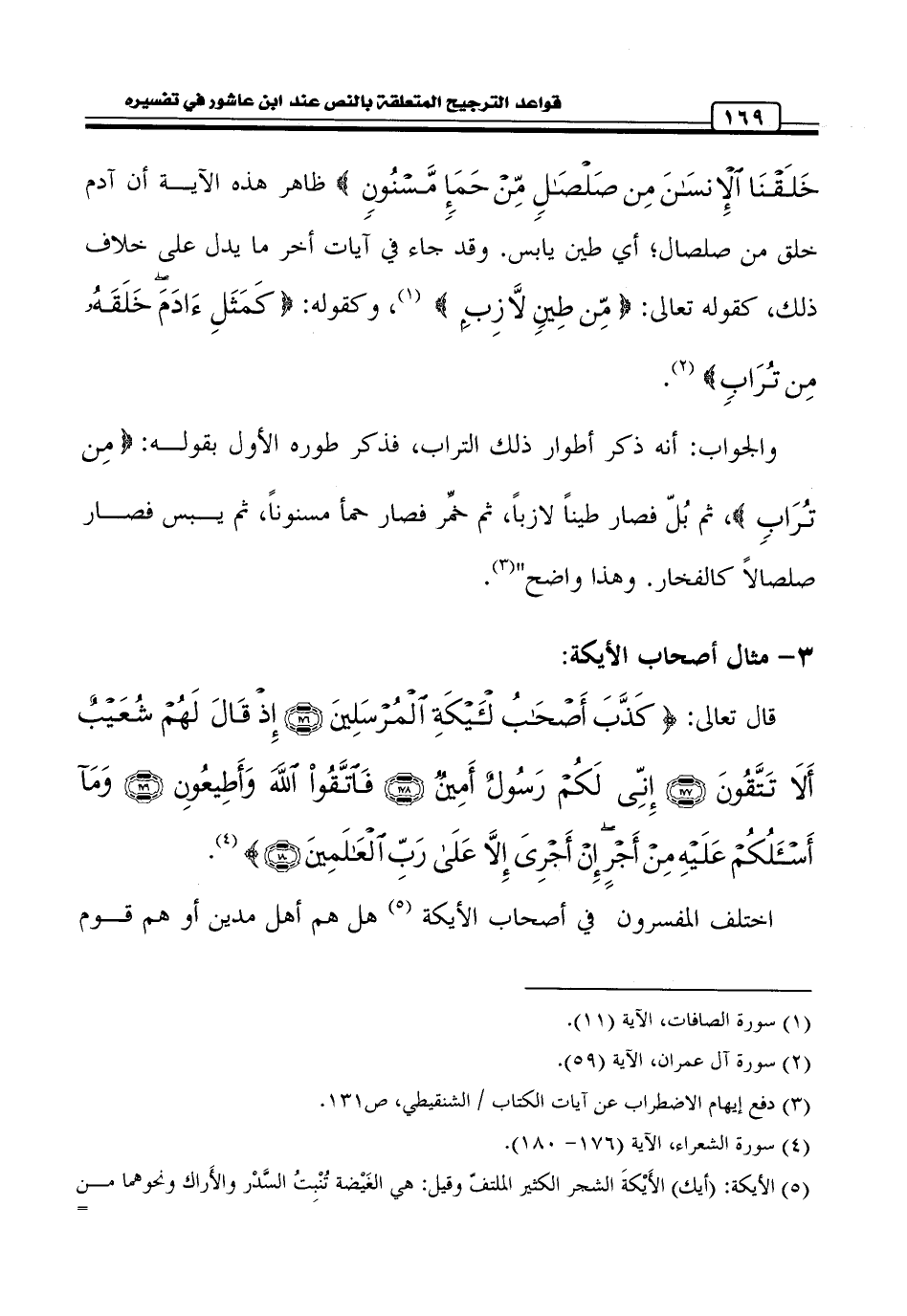كتاب قواعد الترجيح المتعلقة بالنص عند ابن عاشور في تفسيره التحرير والتنوير