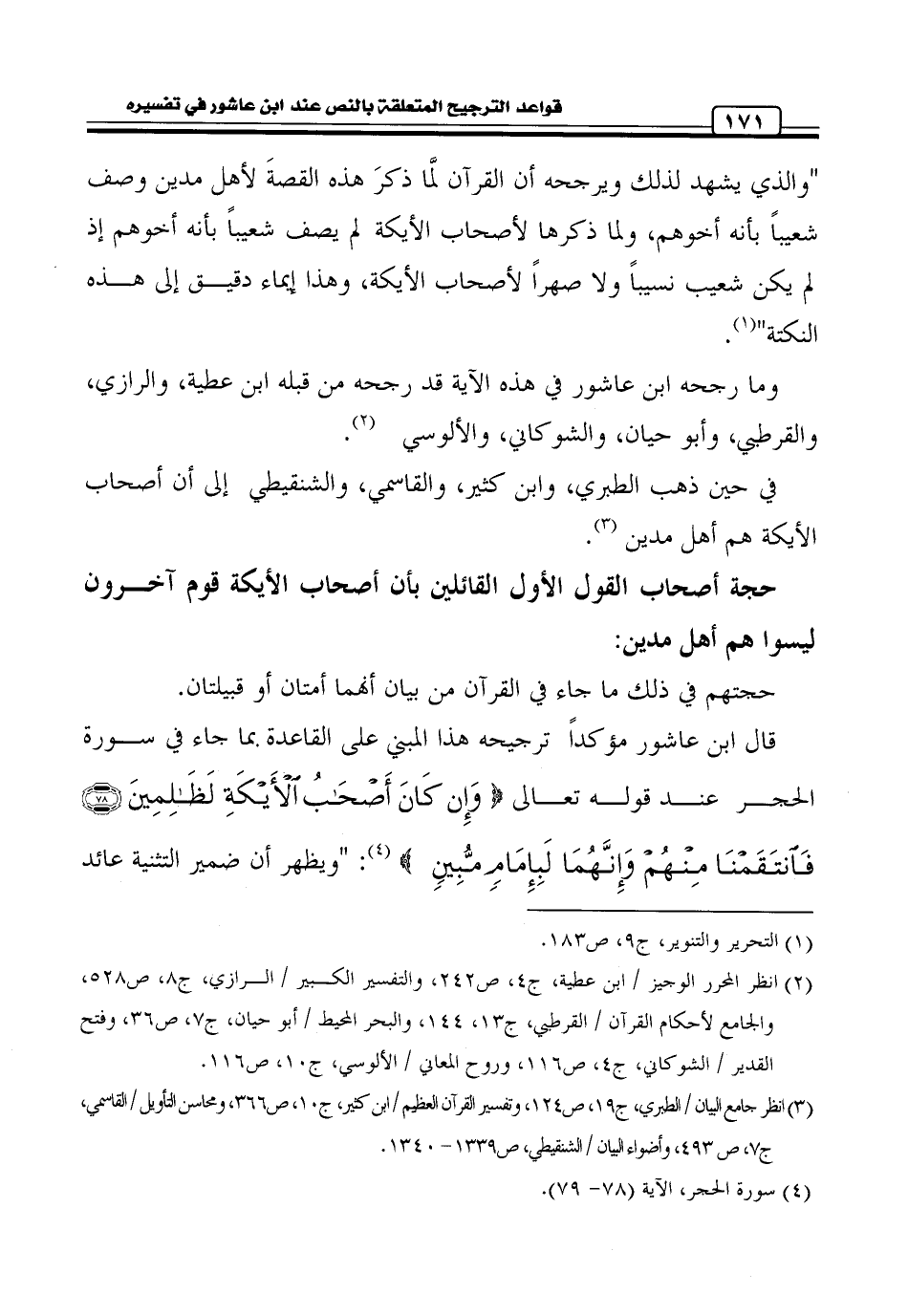كتاب قواعد الترجيح المتعلقة بالنص عند ابن عاشور في تفسيره التحرير والتنوير