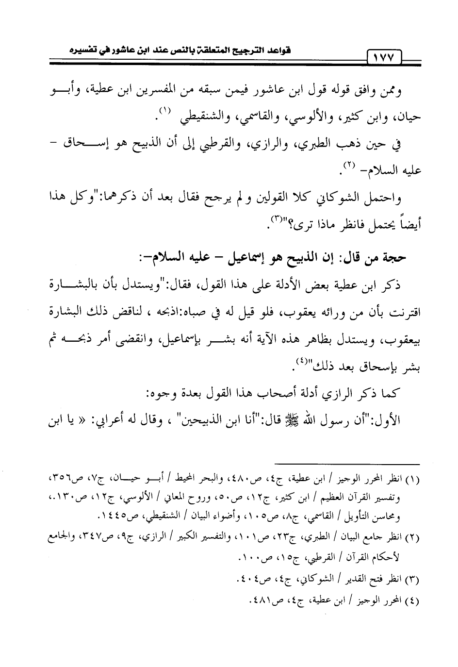 كتاب قواعد الترجيح المتعلقة بالنص عند ابن عاشور في تفسيره التحرير والتنوير