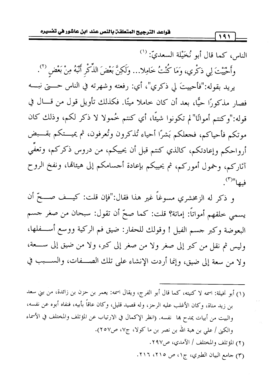 كتاب قواعد الترجيح المتعلقة بالنص عند ابن عاشور في تفسيره التحرير والتنوير