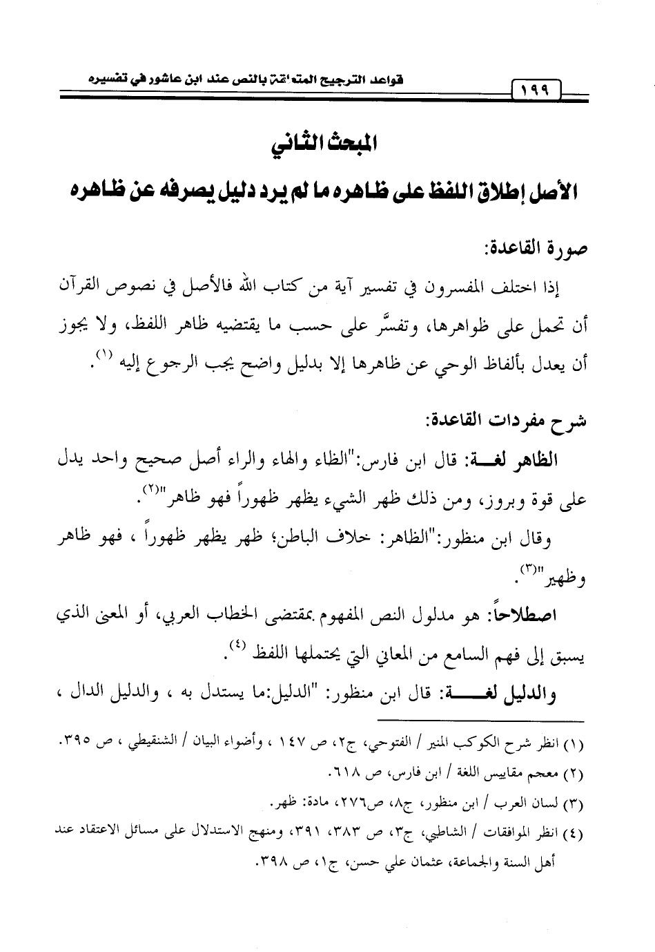 كتاب قواعد الترجيح المتعلقة بالنص عند ابن عاشور في تفسيره التحرير والتنوير