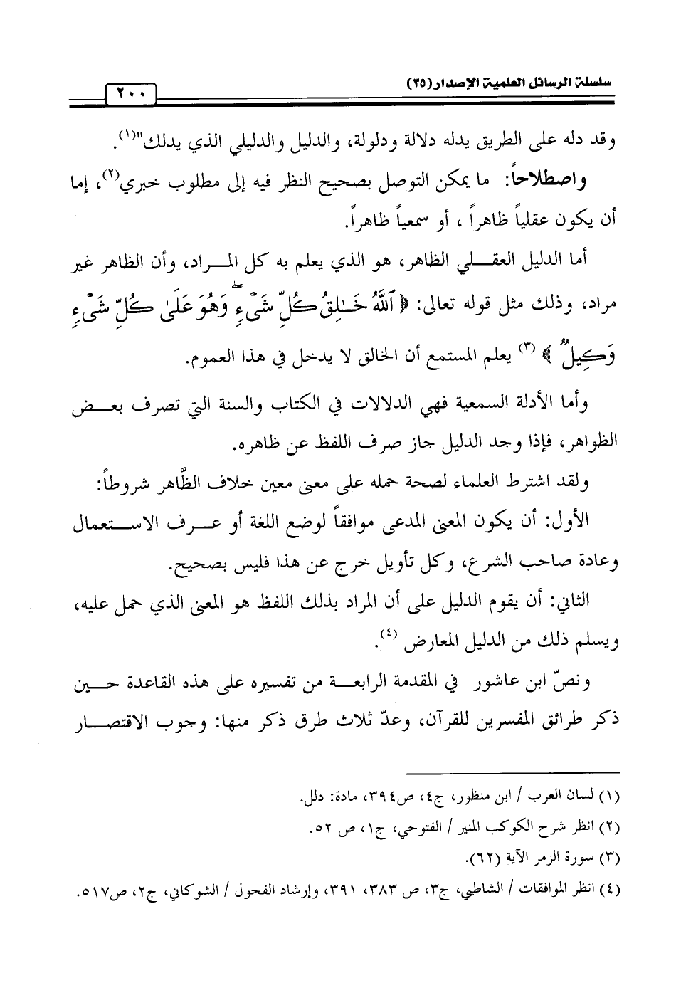 (¬4) انظر الموافقات / الشاطبي، ج 3، ص 383، 391، وإرشاد الفحول / الشوكاني، ج 2، ص 517.