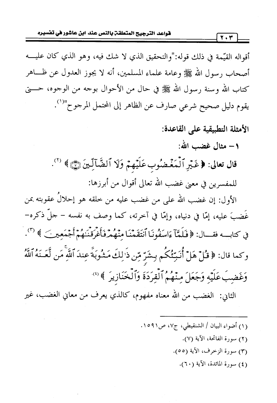 كتاب قواعد الترجيح المتعلقة بالنص عند ابن عاشور في تفسيره التحرير والتنوير