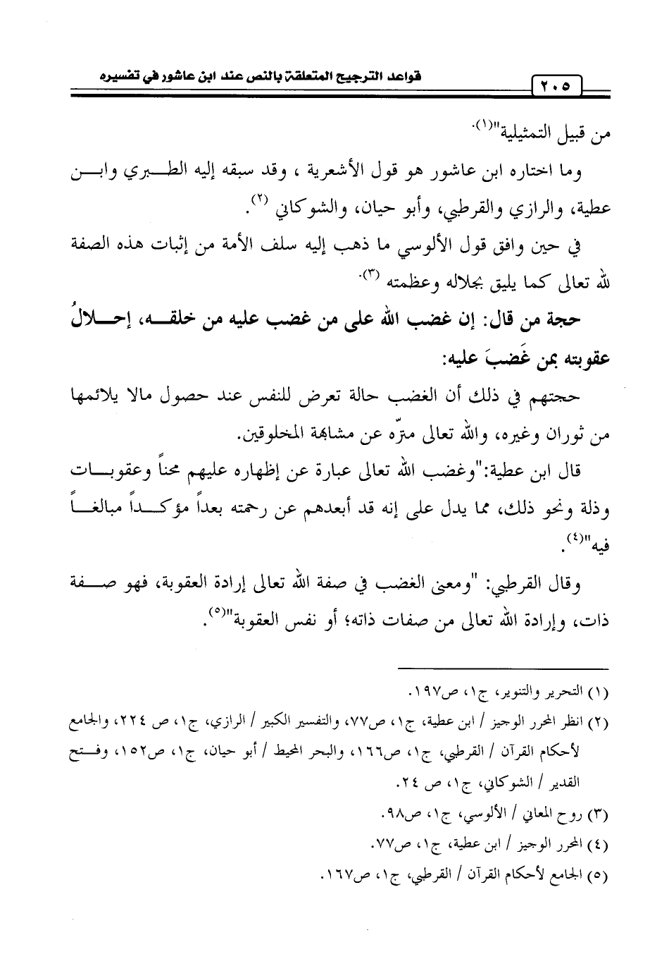 كتاب قواعد الترجيح المتعلقة بالنص عند ابن عاشور في تفسيره التحرير والتنوير