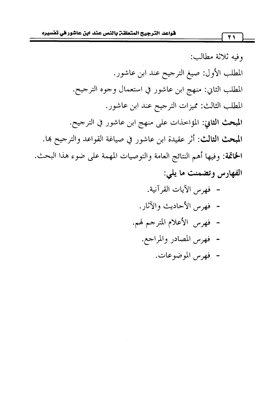 كتاب قواعد الترجيح المتعلقة بالنص عند ابن عاشور في تفسيره التحرير والتنوير