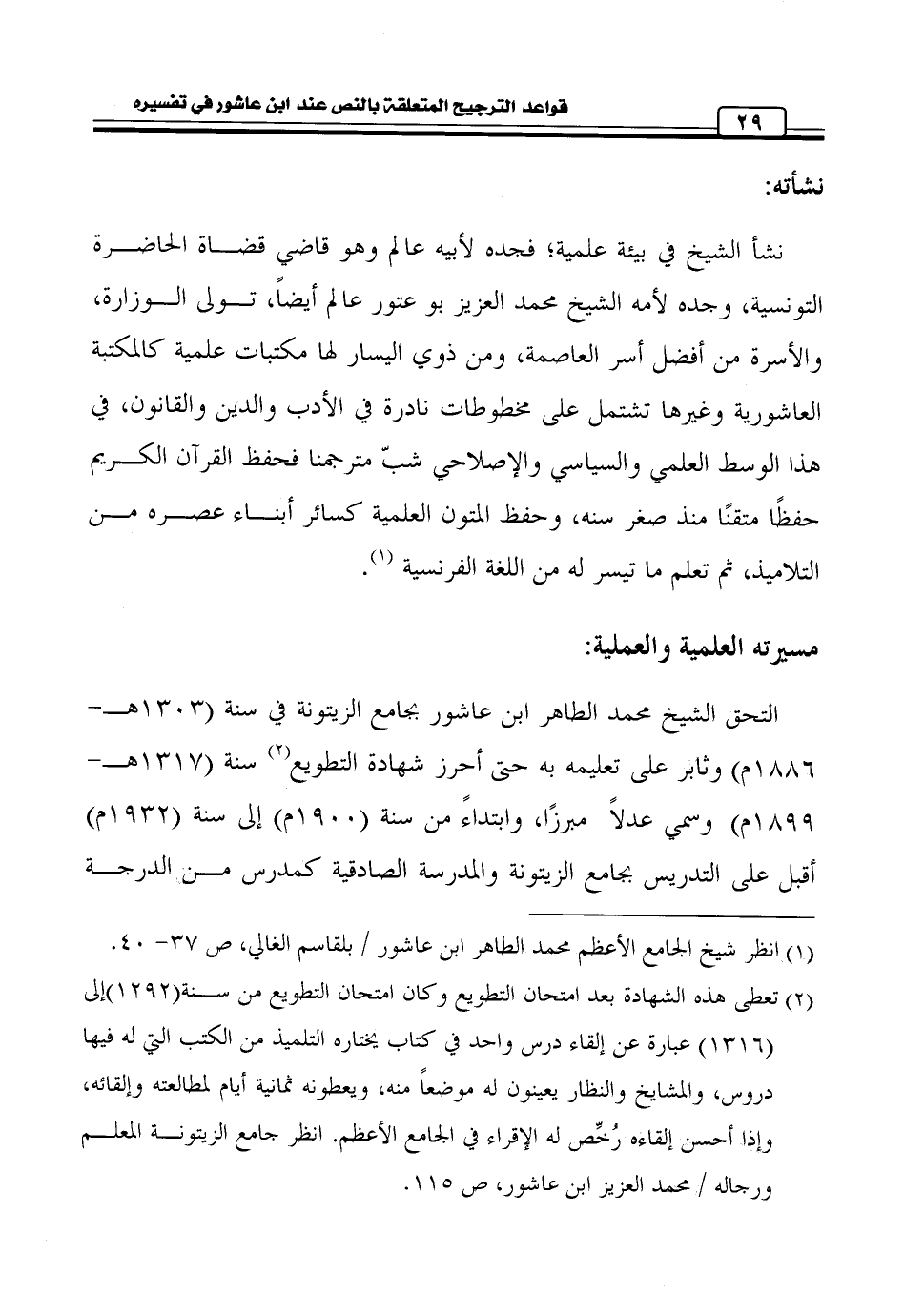 كتاب قواعد الترجيح المتعلقة بالنص عند ابن عاشور في تفسيره التحرير والتنوير