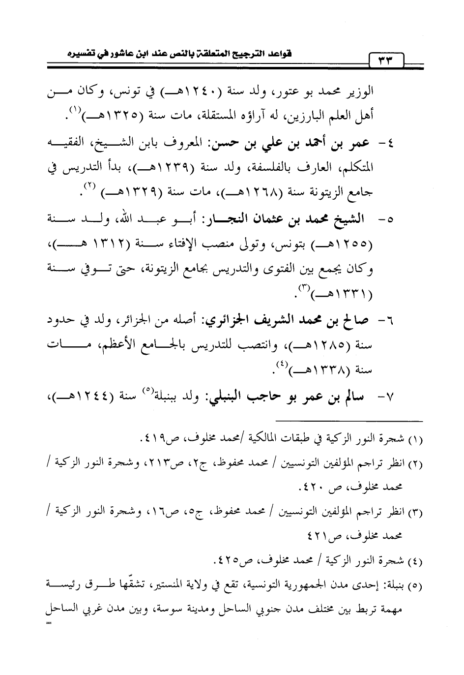 كتاب قواعد الترجيح المتعلقة بالنص عند ابن عاشور في تفسيره التحرير والتنوير
