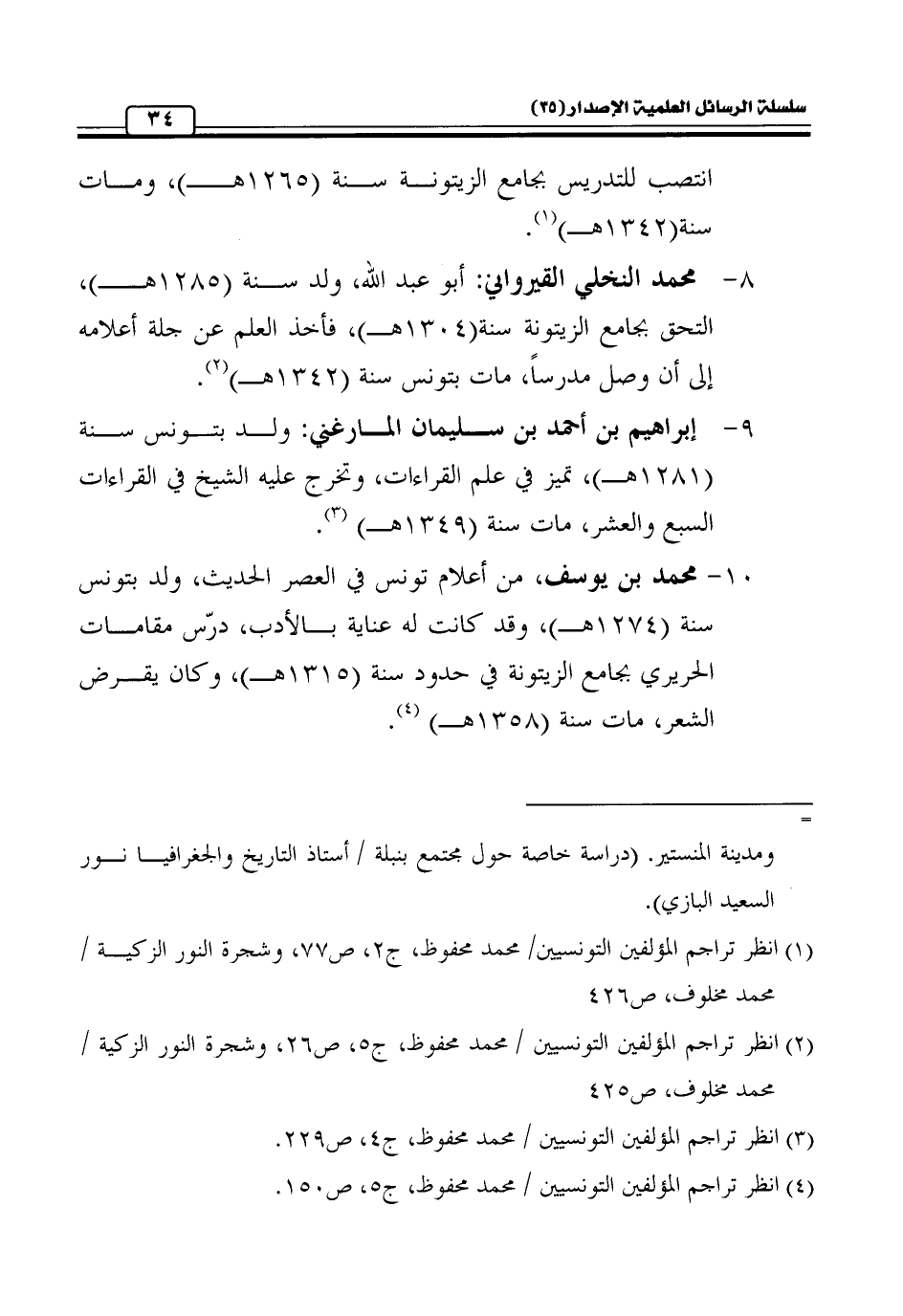 (¬4) انظر تراجم المؤلفين التونسيين / محمد محفوظ، ج 5، ص 150.