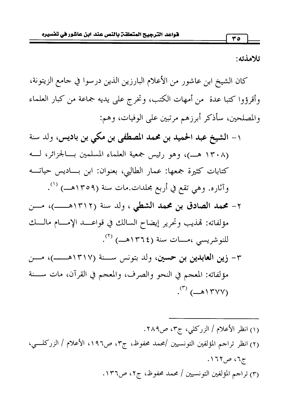 كتاب قواعد الترجيح المتعلقة بالنص عند ابن عاشور في تفسيره التحرير والتنوير
