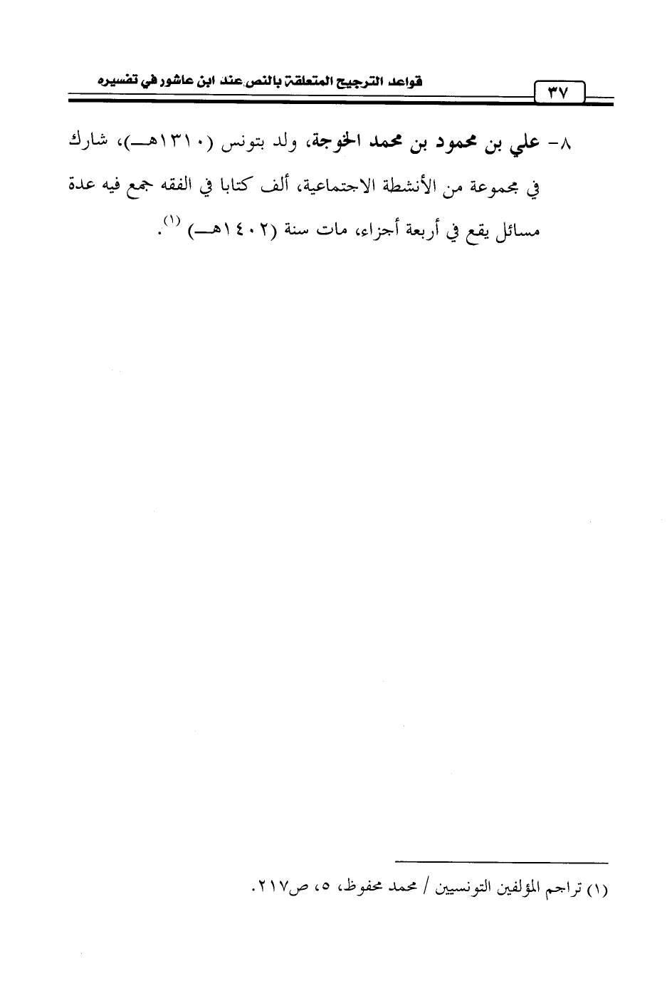 (¬1) تراجم المؤلفين التونسيين / محمد محفوظ، 5، ص 217.