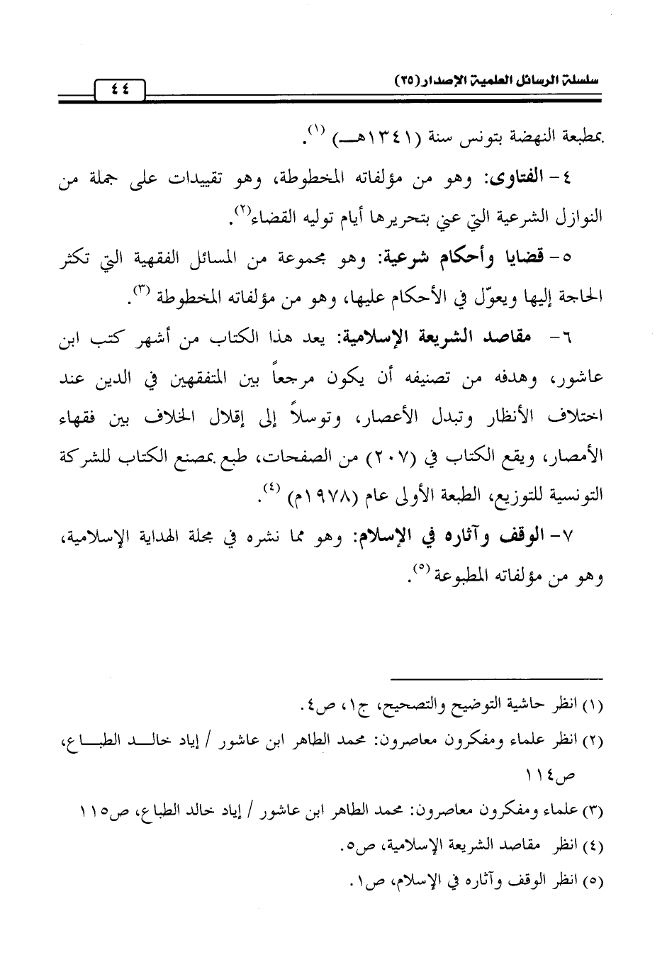 (¬2) انظر علماء ومفكرون معاصرون: محمد الطاهر ابن عاشور / إياد خالد الطباع، ص 114