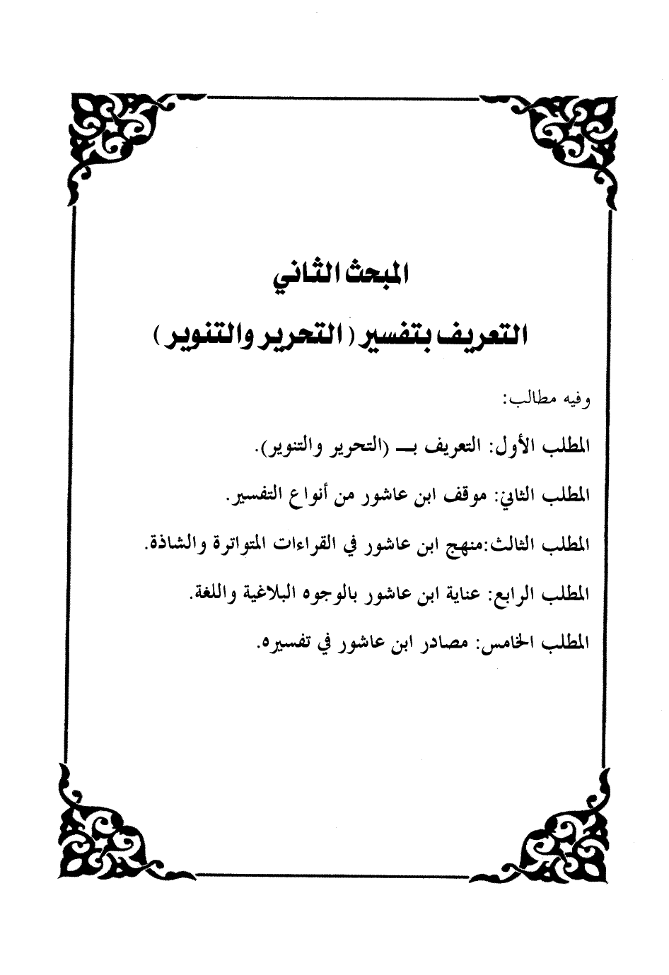 المطلب الأول: التعريف بـ (التحرير والتنوير).