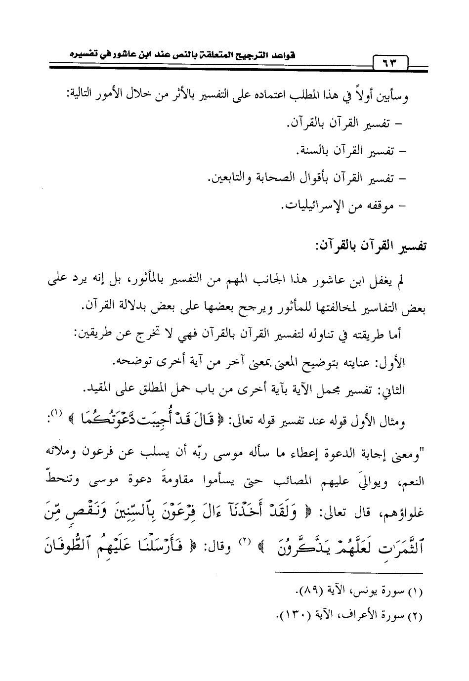 كتاب قواعد الترجيح المتعلقة بالنص عند ابن عاشور في تفسيره التحرير والتنوير