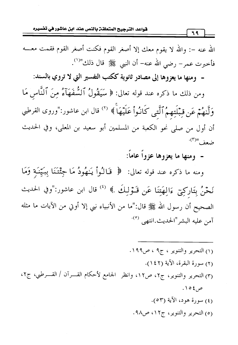 كتاب قواعد الترجيح المتعلقة بالنص عند ابن عاشور في تفسيره التحرير والتنوير