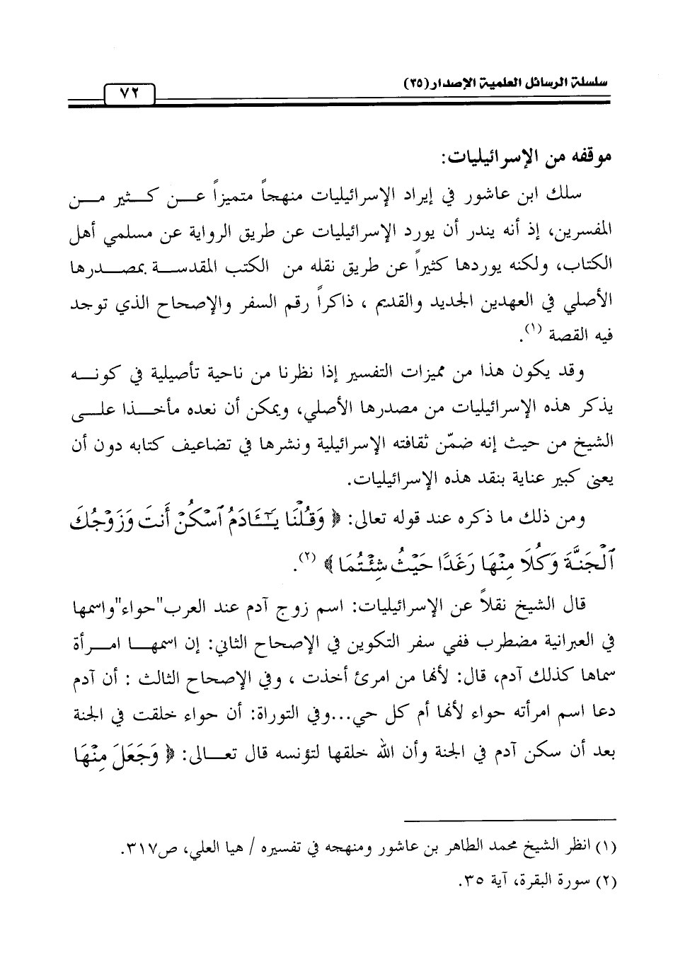 (¬1) انظر الشيخ محمد الطاهر بن عاشور ومنهجه في تفسيره / هيا العلي، ص 317.
