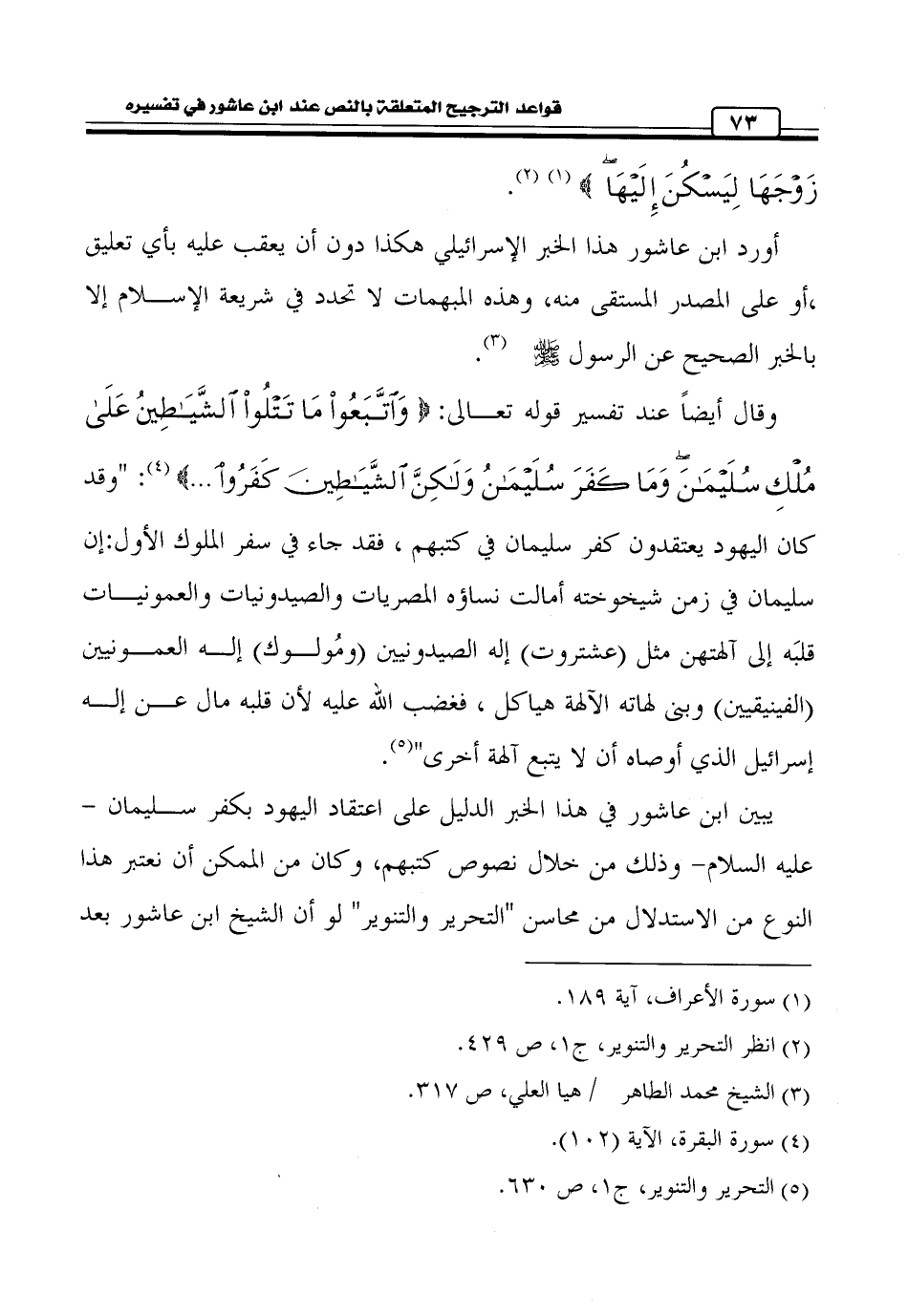 كتاب قواعد الترجيح المتعلقة بالنص عند ابن عاشور في تفسيره التحرير والتنوير