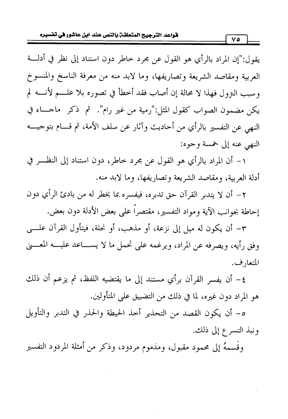 كتاب قواعد الترجيح المتعلقة بالنص عند ابن عاشور في تفسيره التحرير والتنوير