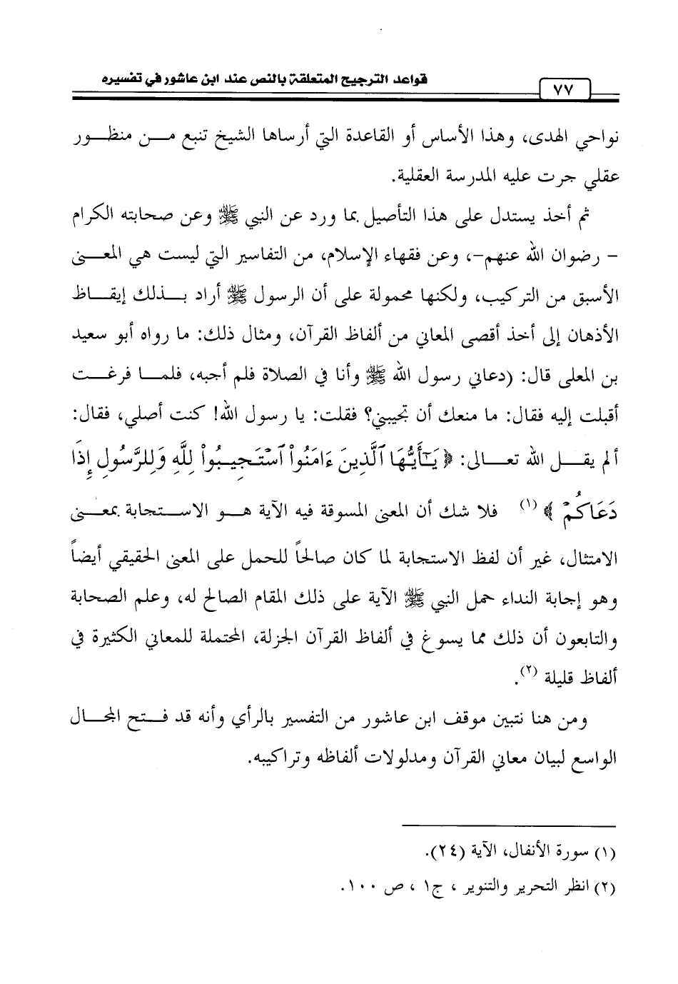 كتاب قواعد الترجيح المتعلقة بالنص عند ابن عاشور في تفسيره التحرير والتنوير