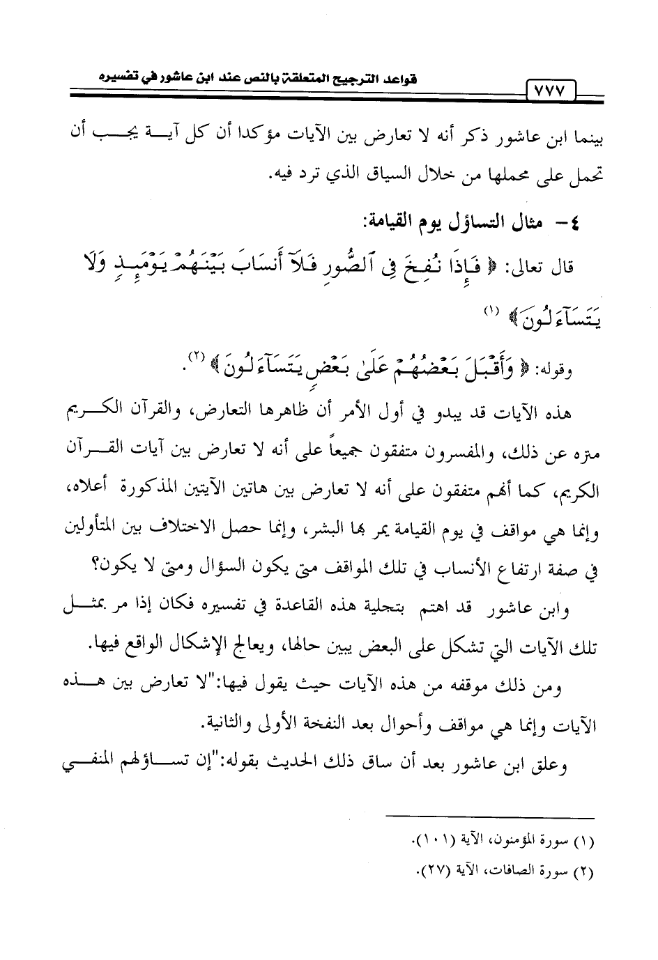 كتاب قواعد الترجيح المتعلقة بالنص عند ابن عاشور في تفسيره التحرير والتنوير