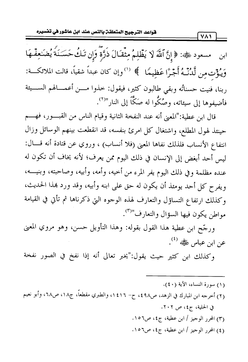 كتاب قواعد الترجيح المتعلقة بالنص عند ابن عاشور في تفسيره التحرير والتنوير