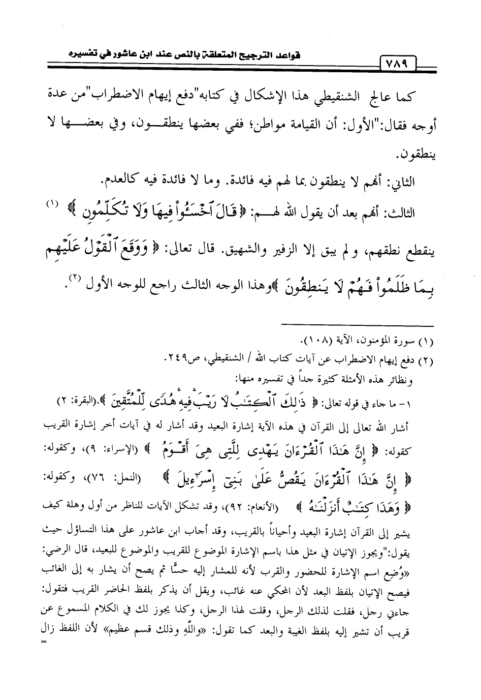 (¬2) دفع إيهام الاضطراب عن آيات كتاب الله / الشنقيطي، ص 249.